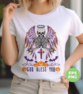 Celebrate Halloween in style with our digital PNG sublimation featuring a skeleton with wings and the phrase "God Bless You". Perfect for crafts, decorations, and more.