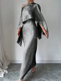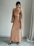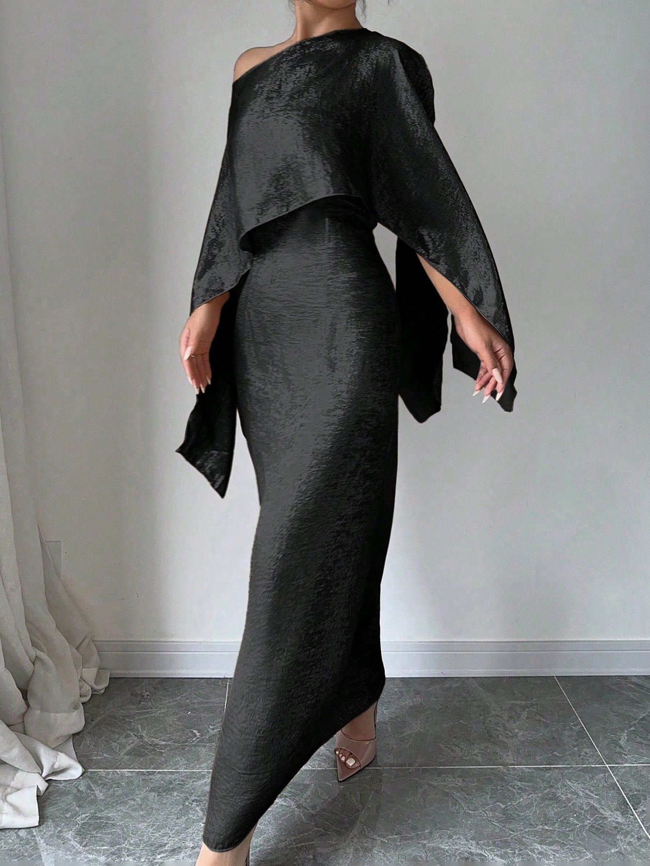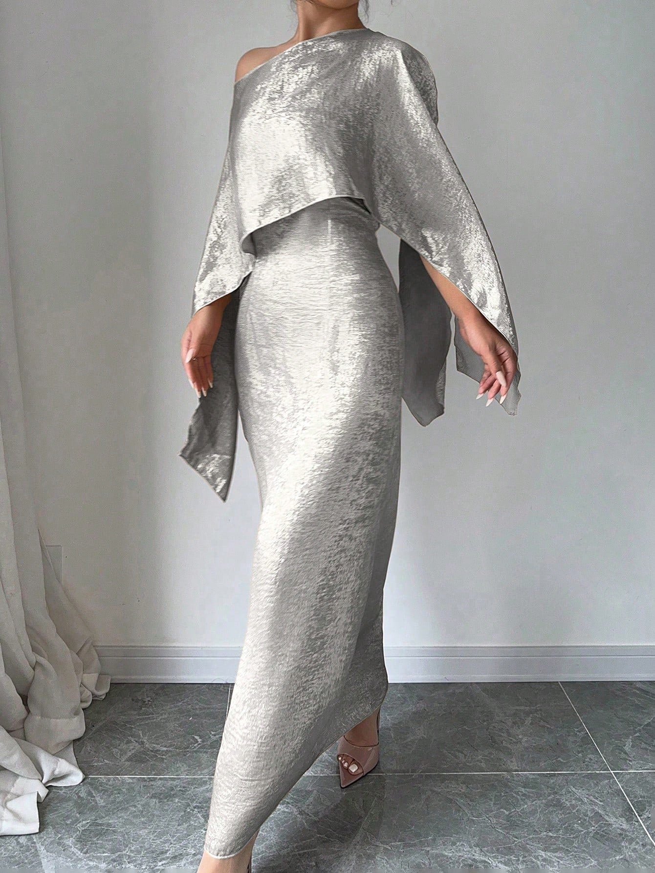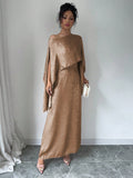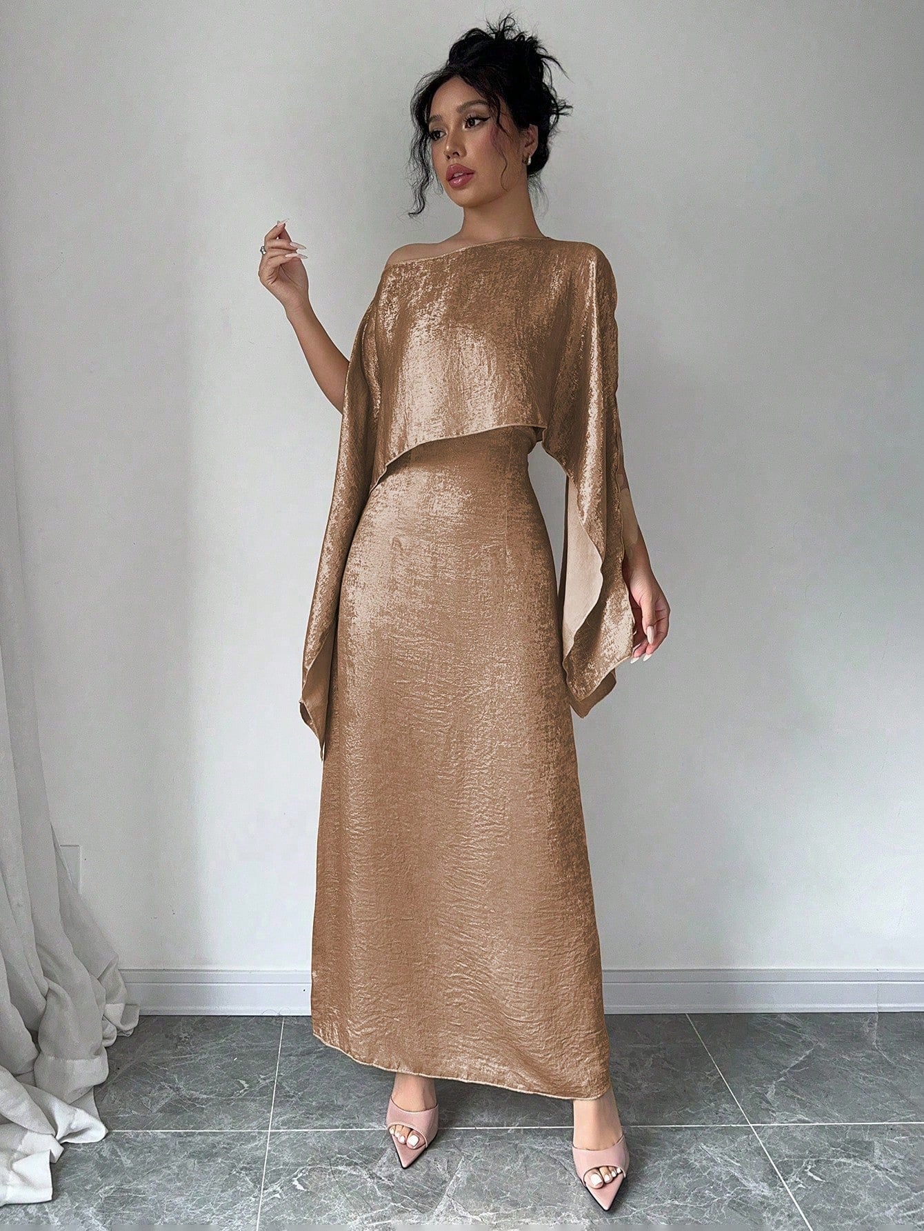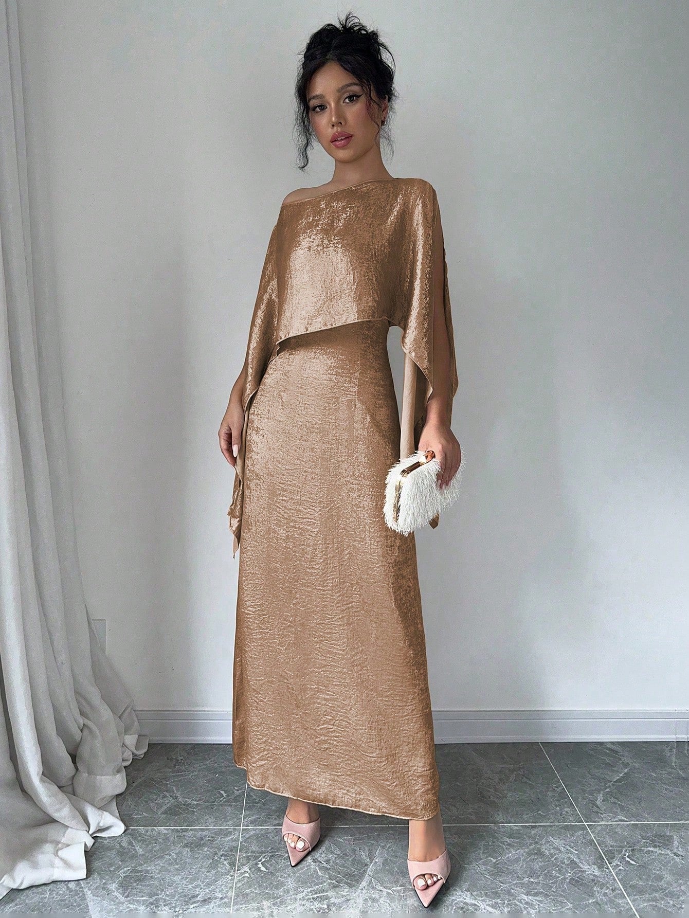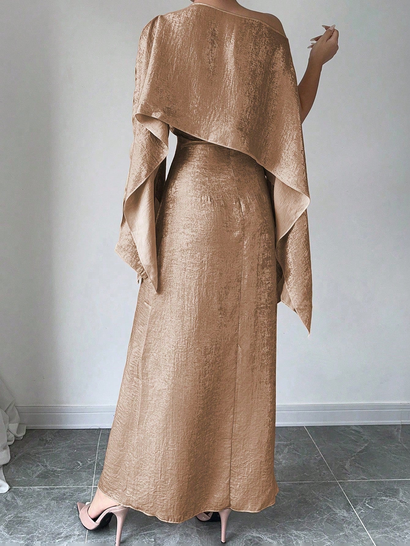 Gold Asymmetrical Midi Dress – Elegant Solid Color Design