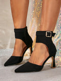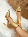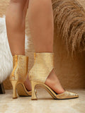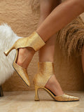 Golden Elegance: Women's High Heel Muller Shoe with Zipper Buckle and Pointed Toe