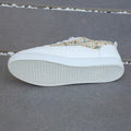 Introducing our Golden Glitter White Sneakers: the perfect combination of style and comfort. With a touch of sparkle, these sneakers will make you stand out from the crowd. Made with high-quality materials, they offer durability and long-lasting shine. Elevate your fashion game with these trendy sneakers.