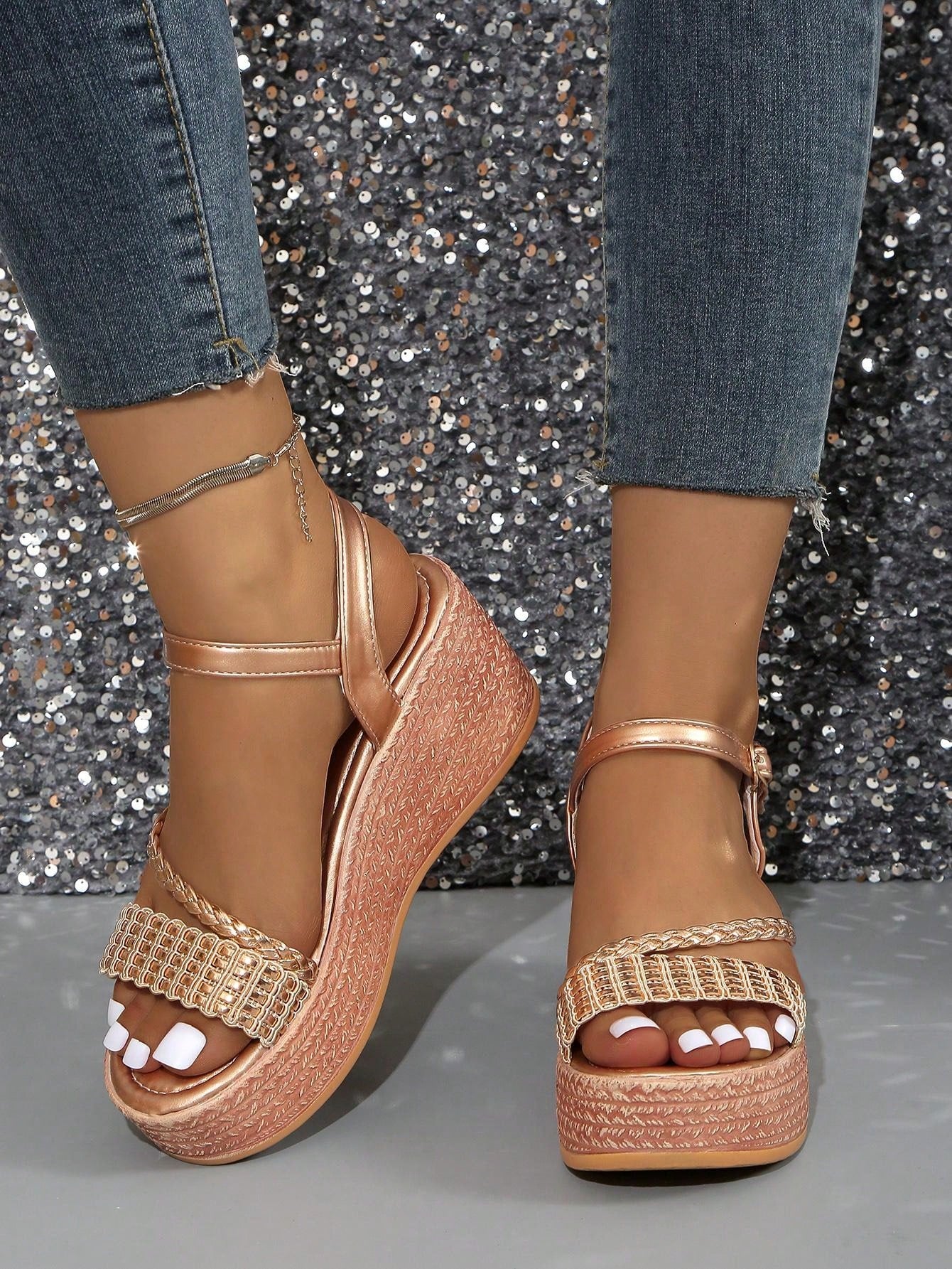 Golden Goddess Wedge Heel Sandals: Lightweight and Stylish for Your Holiday Wardrobe