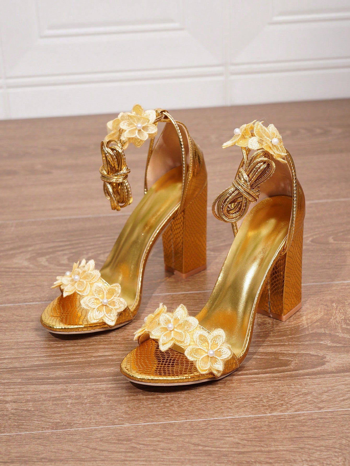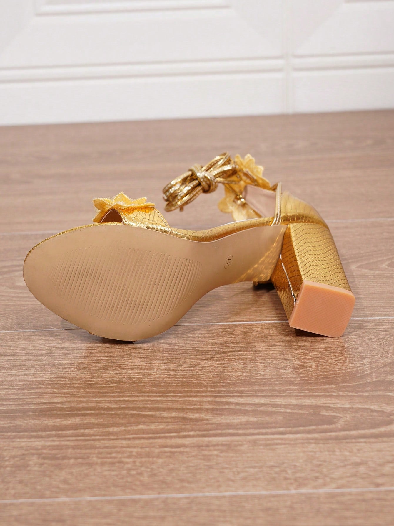 Golden Serpent Chunky Heel Sandals: An Elegance for Banquets and Gatherings