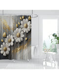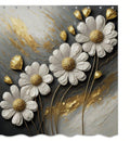 Golden Texture Floral Boho Daisy Shower Curtain Set: Modern Bathroom Decor with Hooks