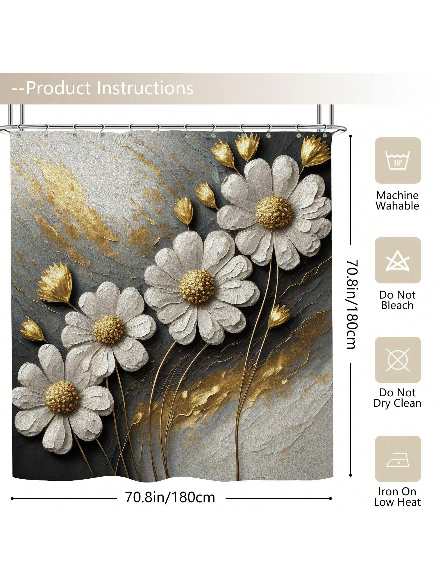 Add a touch of elegance to your bathroom with our Golden Texture Floral Boho Daisy Shower Curtain Set. Crafted with a modern design and including hooks, this set is both stylish and functional. Made of high-quality material, it's sure to give your bathroom a luxurious and polished look.