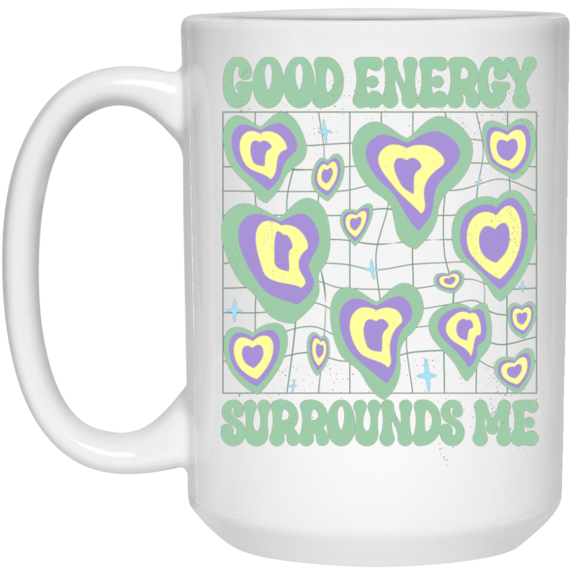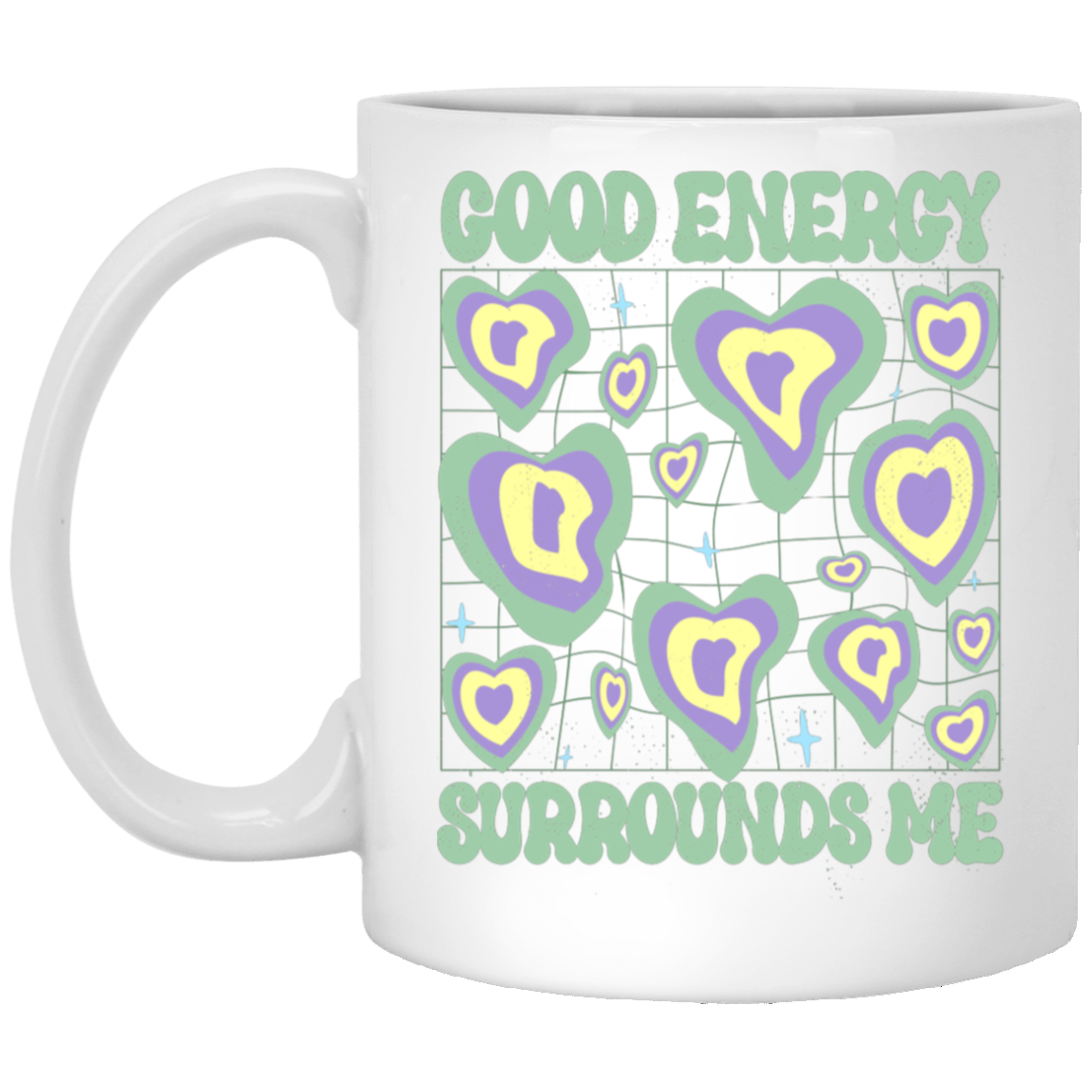Good Energy Surrounds Me, Groovy Good Vibes White Mug