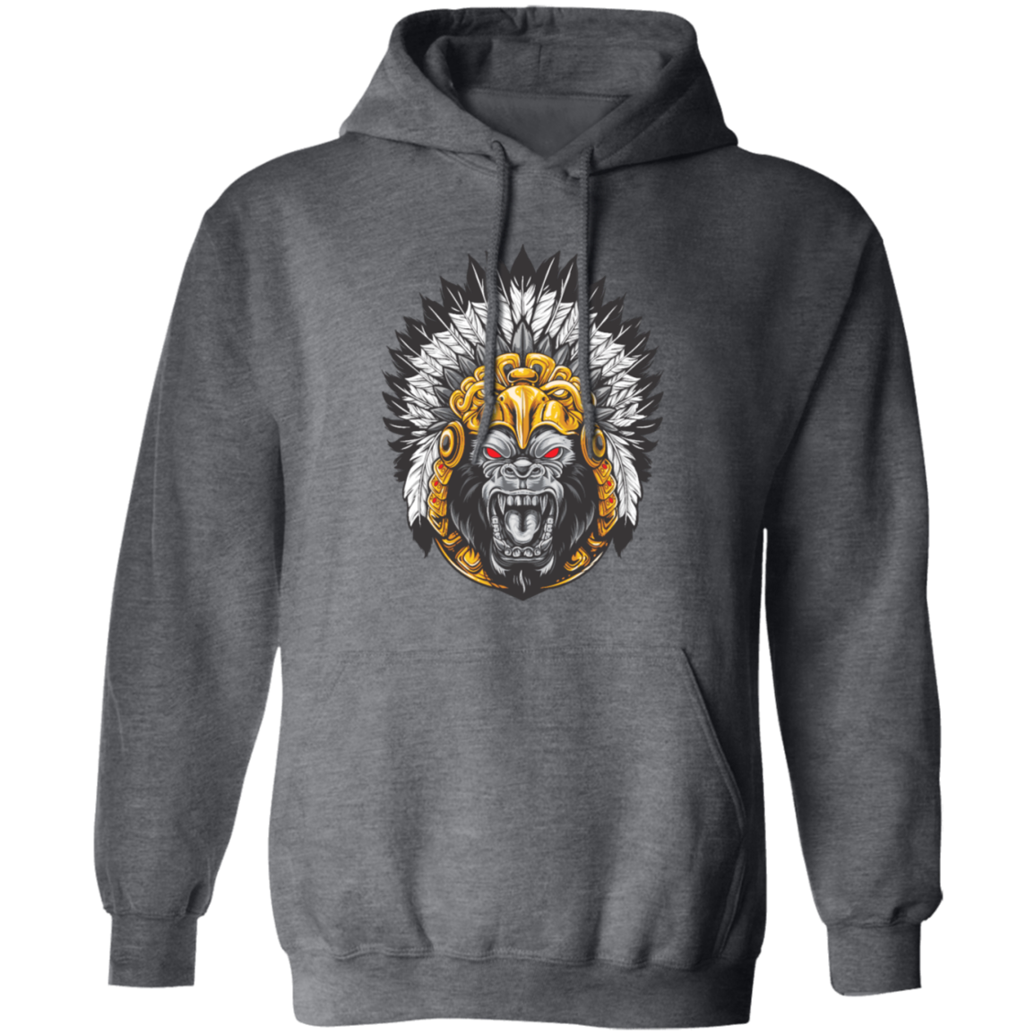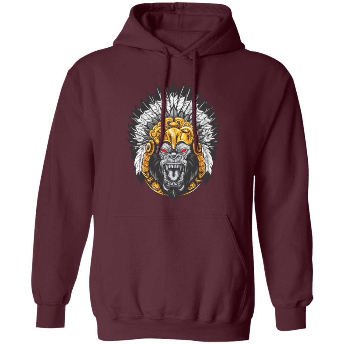 Gorilla Wearing Aztec Headdress, Scare Of Giant Gorilla, Aztec Headdress Pullover Hoodie