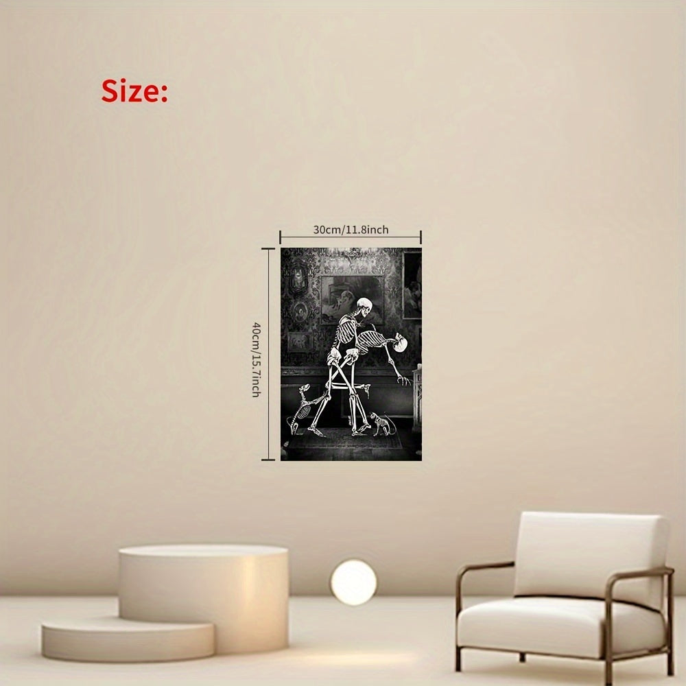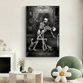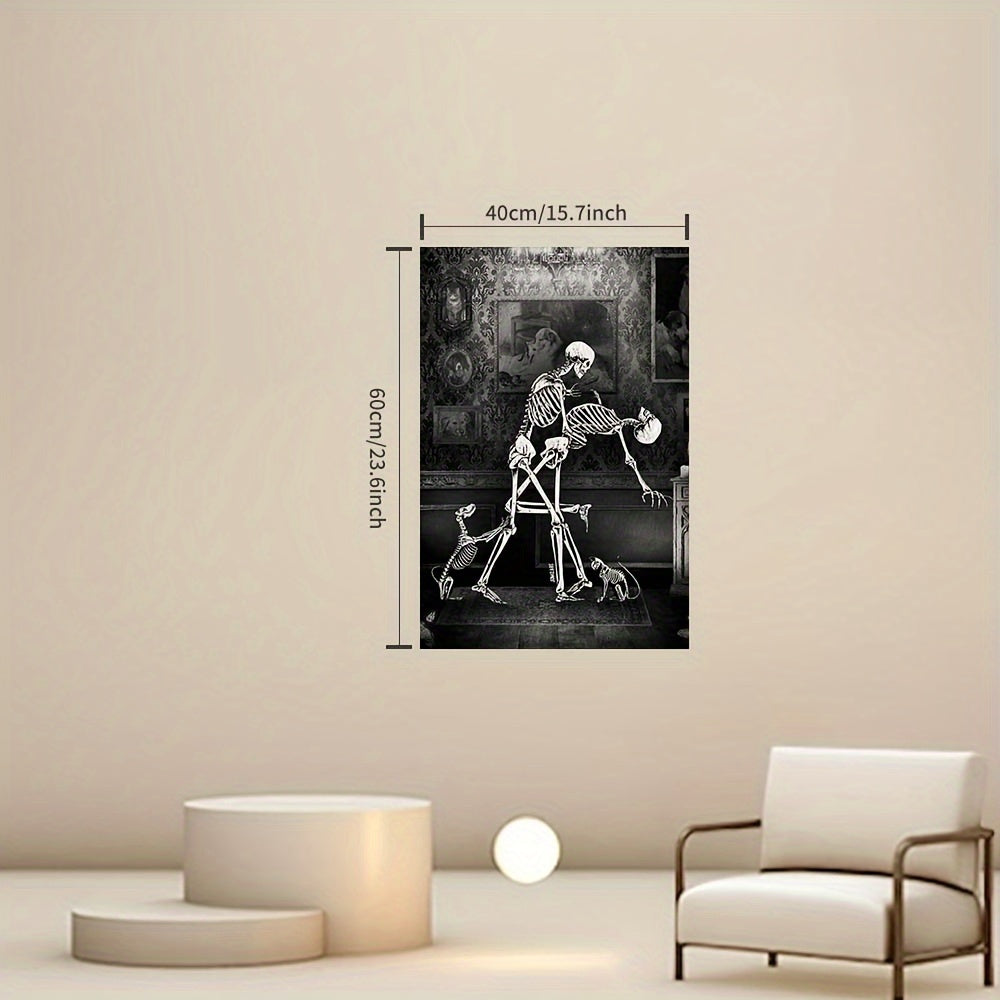 Gothic Canvas Wall Art: Skeleton and Pet Companions for Halloween and Valentine's Day