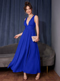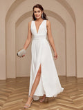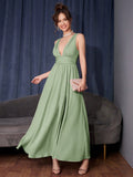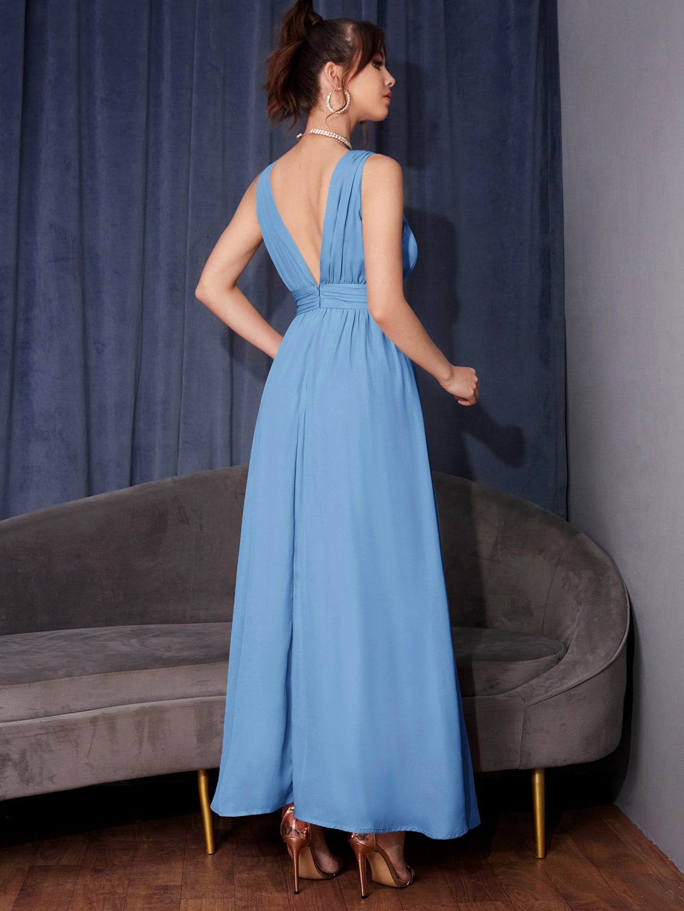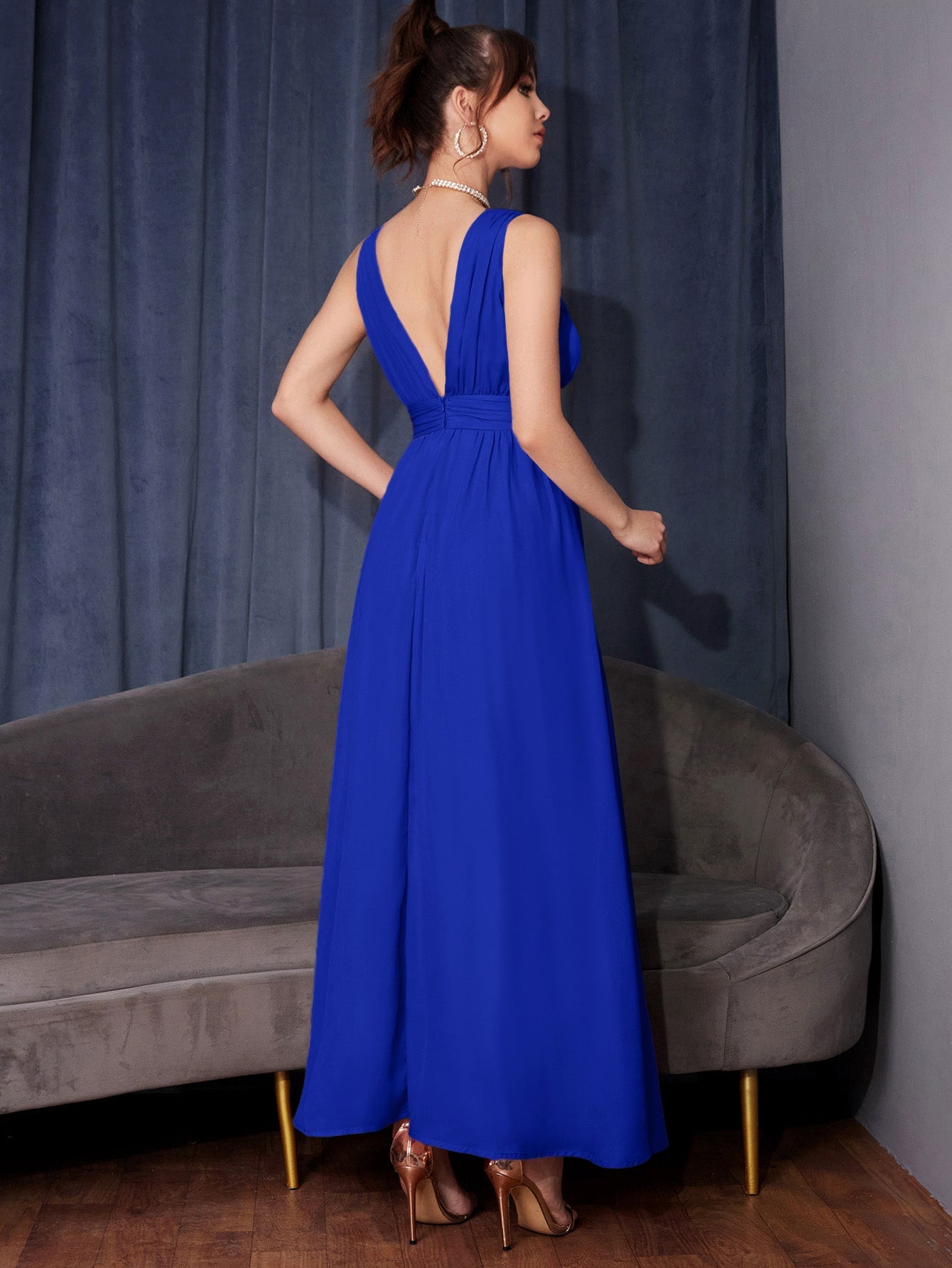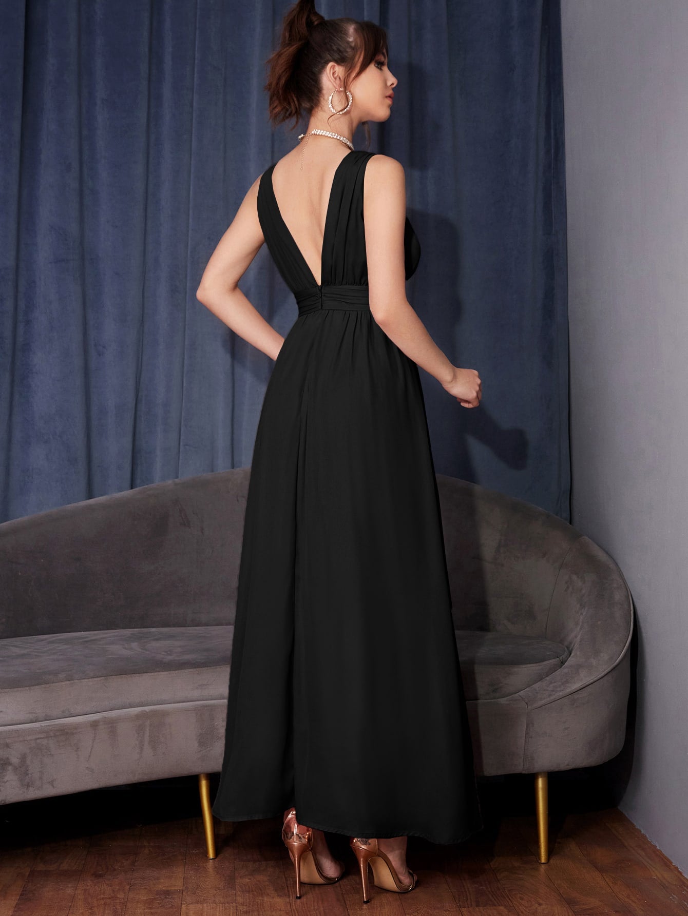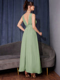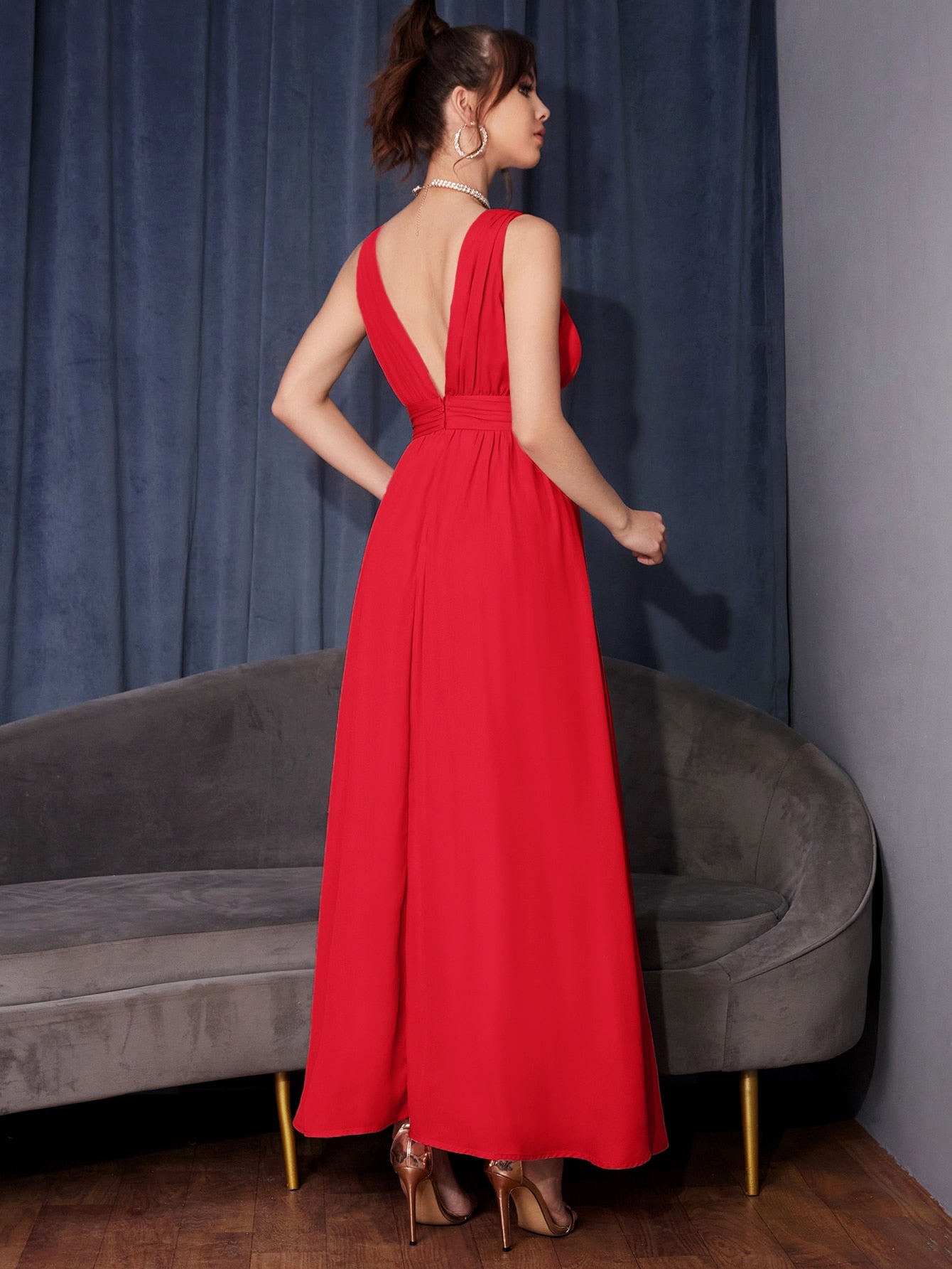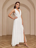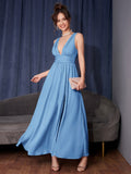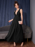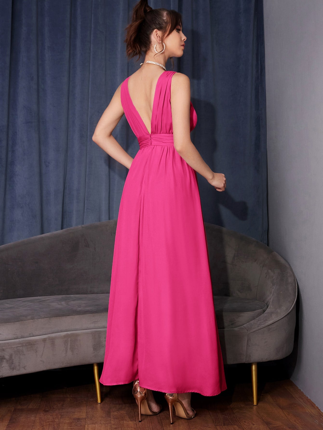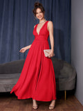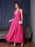 Graceful Elegance: Women's Solid Color Deep V-Neck High Split Dress