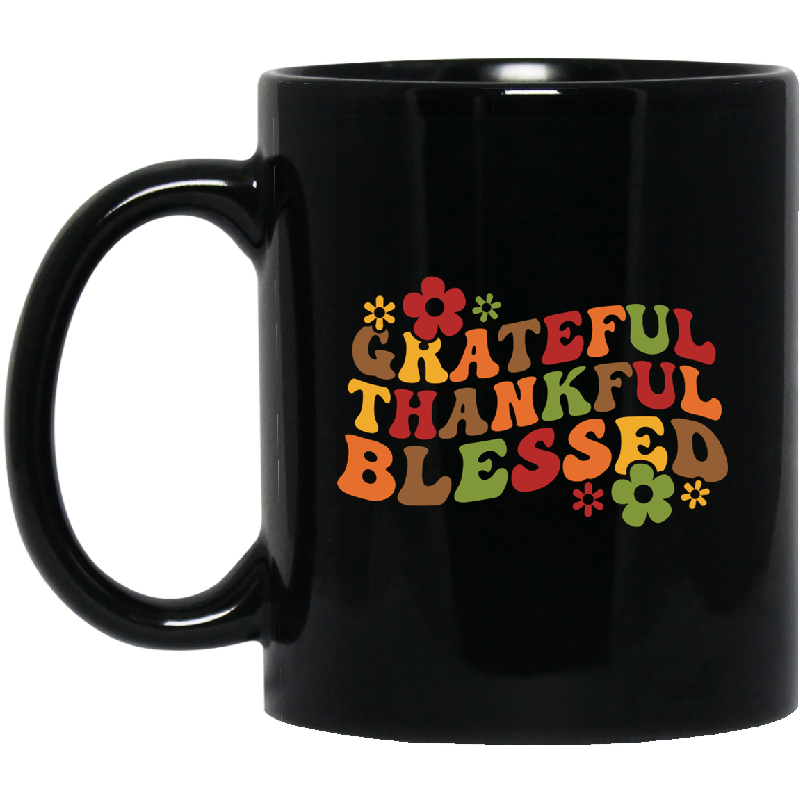 Grateful, Thankful, Blessed, Thanksgiving, Fall Season Black Mug