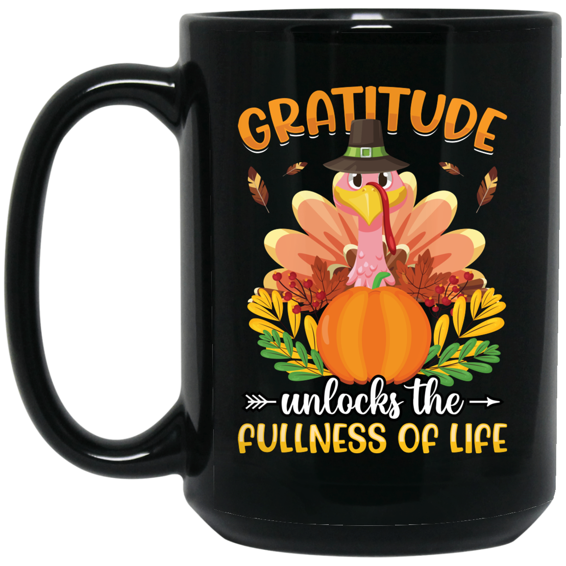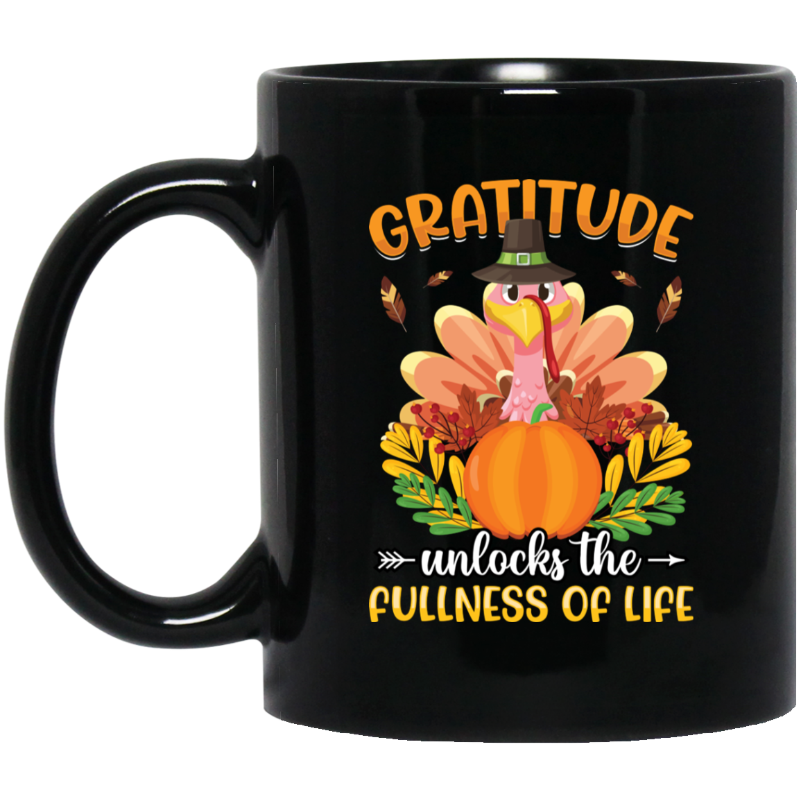 Gratitude Unlocks The Fullness Of Life, Thankful's Day Black Mug