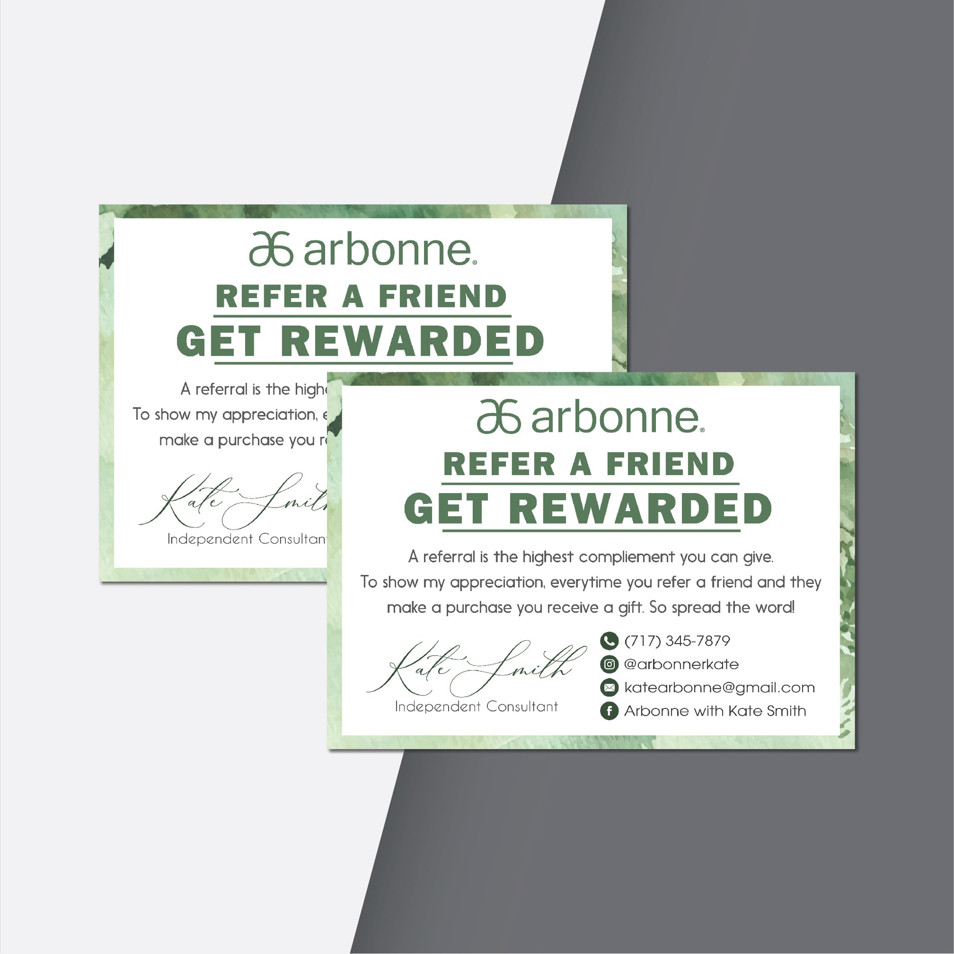 Green Leaves Arbonne Referal Card, Personalized Arbonne Business Cards AB138