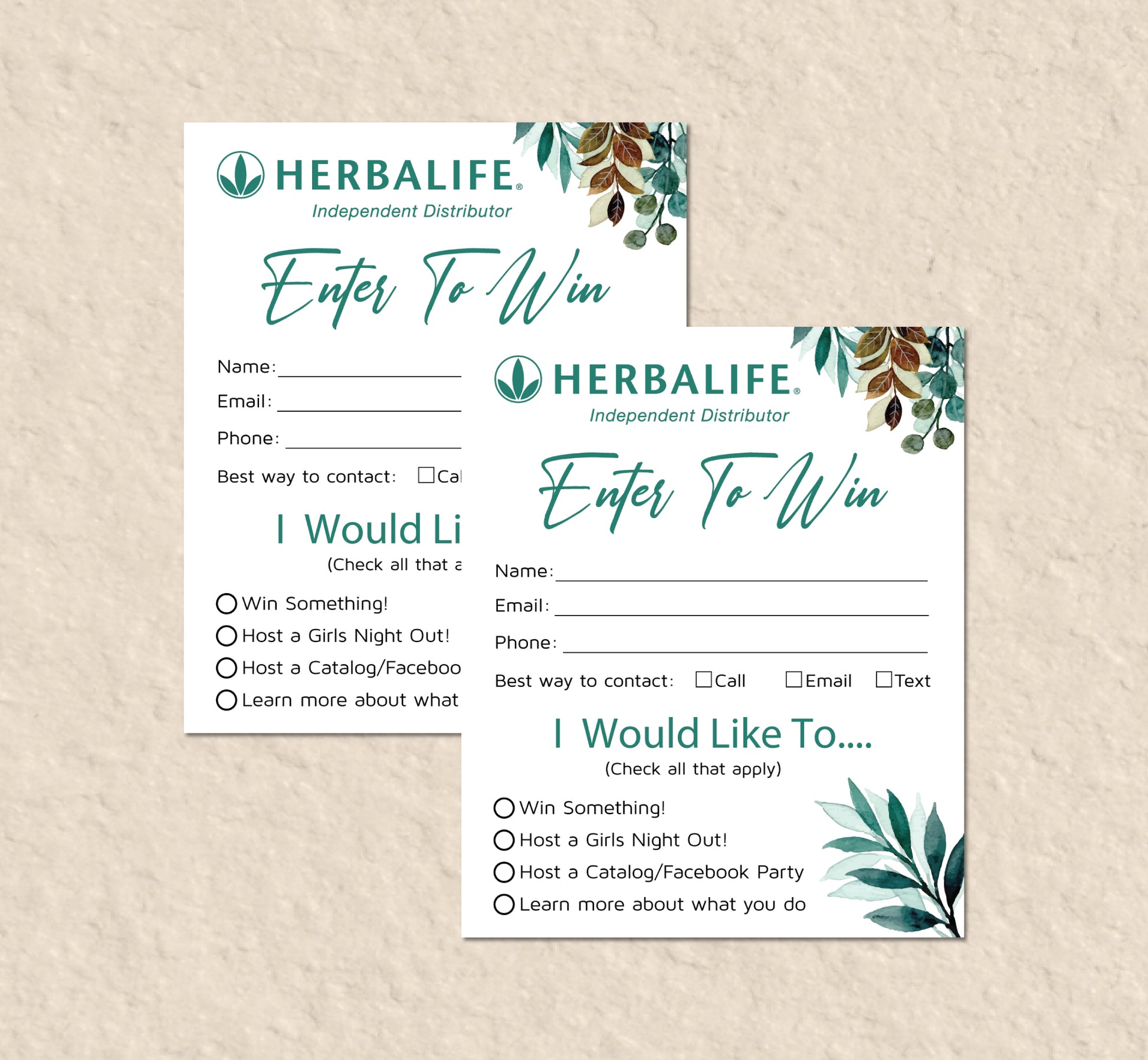 Green Leaves Style Herbalife Enter To Win Card, Personalized Herbalife Business Card HE08