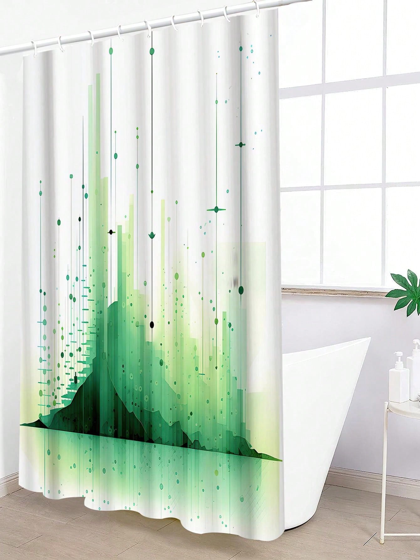 Green Oasis: Modern Polyester Waterproof Shower Curtain for Stylish Bathroom Decor