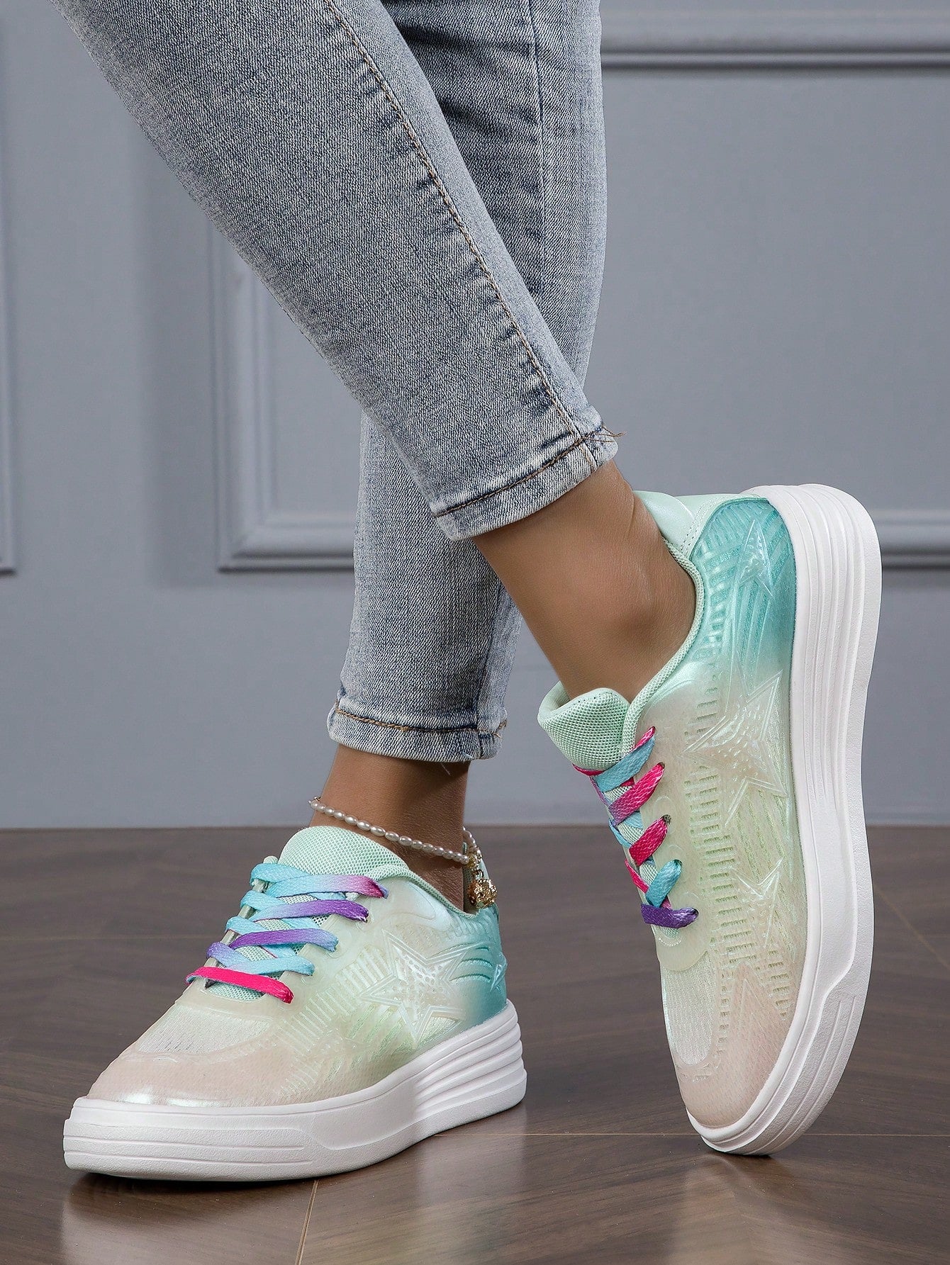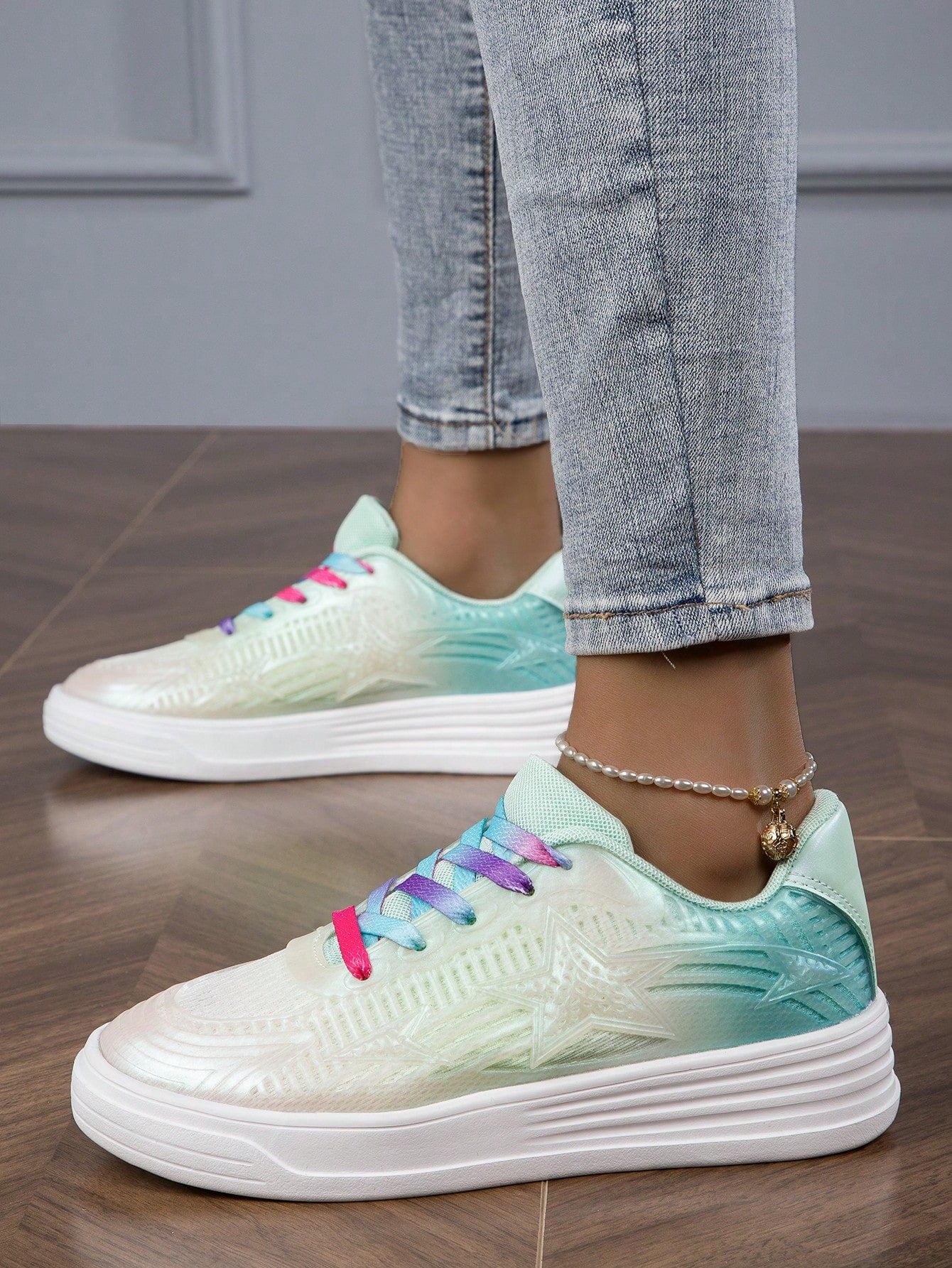 Green Ombre Gradient Star Sneakers: Stylish & Comfortable Low-Cut Design