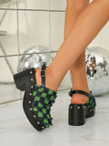 Green Rivet Detail Chunky Heel Slippers: Your Fashion Statement for Parties and Banquets