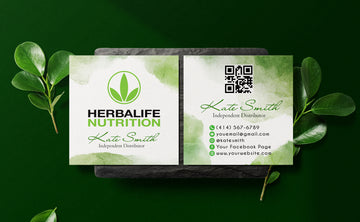 Green Watercolor Herbalife Business Card, Personalized Herbalife Custom QR Cards HE20