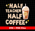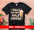 Half Teacher Half Coffee, Back To School, Coffee Lover, Digital Files, Png Sublimation