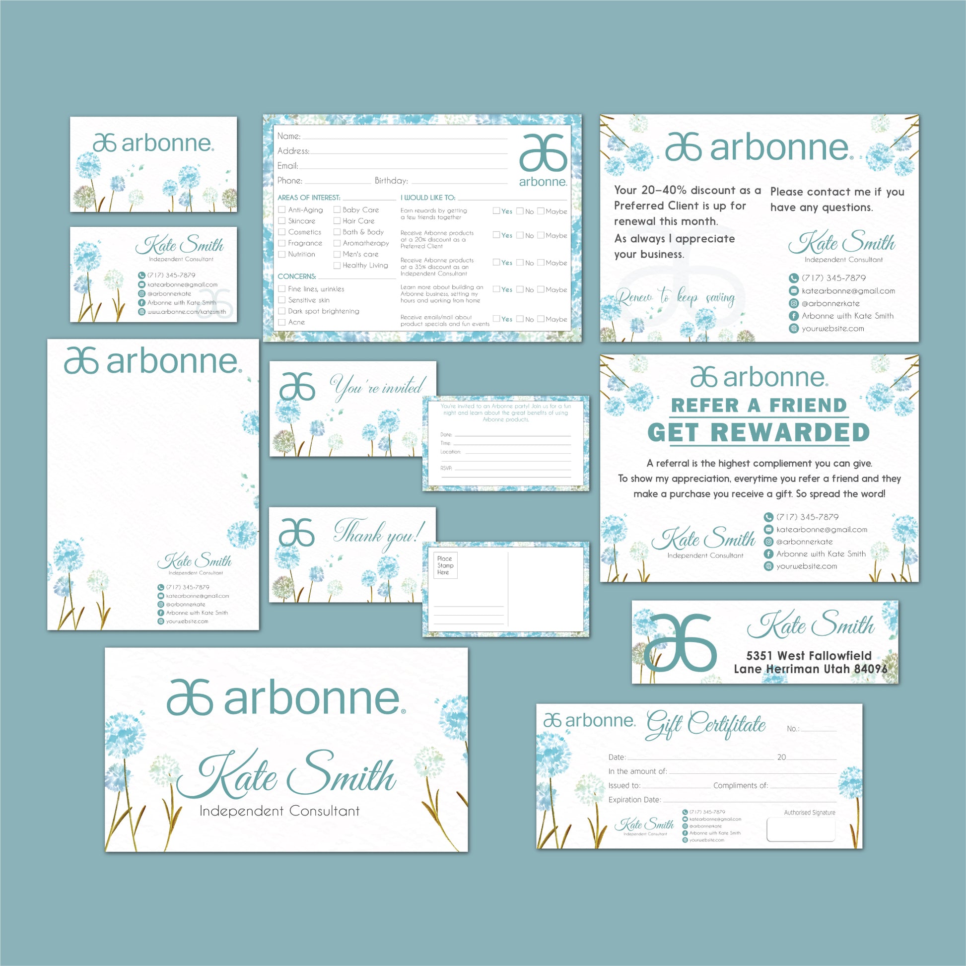 Hand Drawn Dandelion Flower Arbonne Marketing Bundle, Personalized Arbonne Cards, Arbonne Business Card AB125