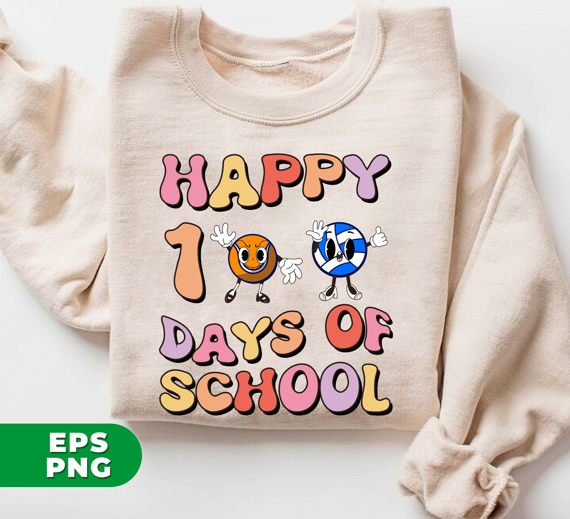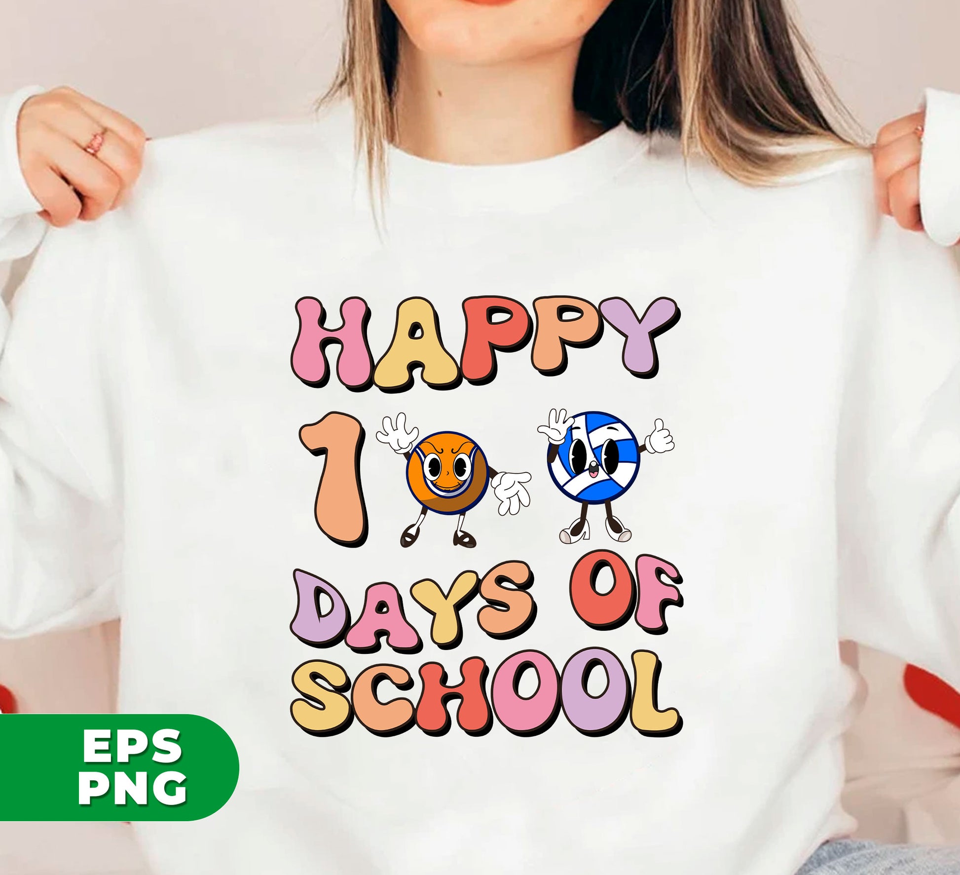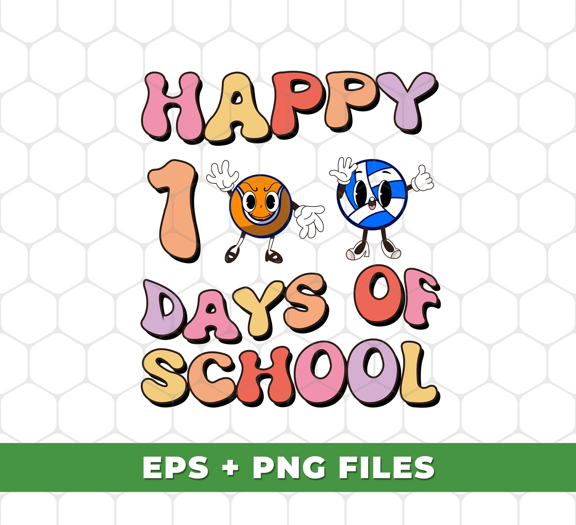 Happy 100 Days Of School, Groovy School, Love Ball, Digital Files, Png Sublimation