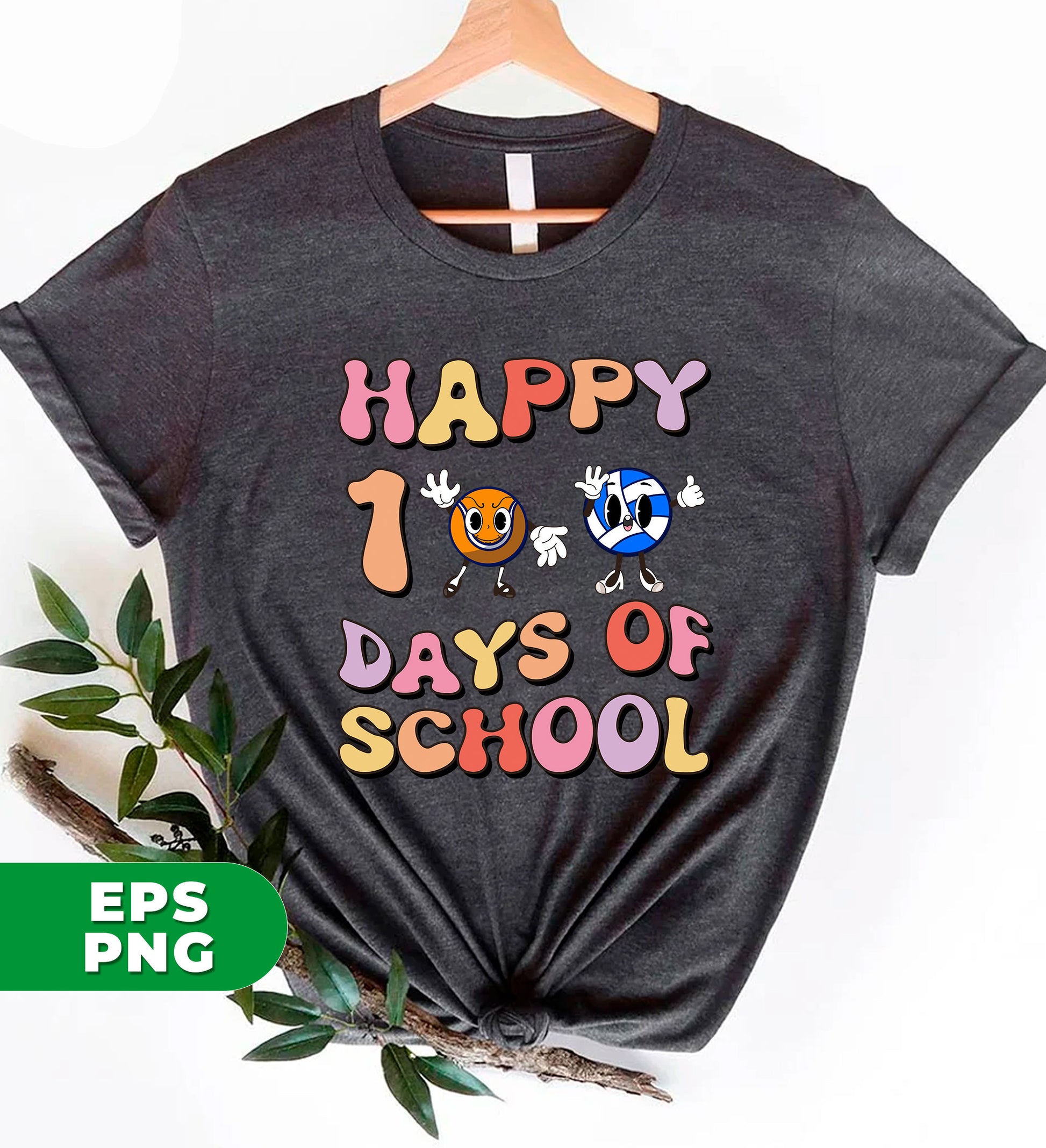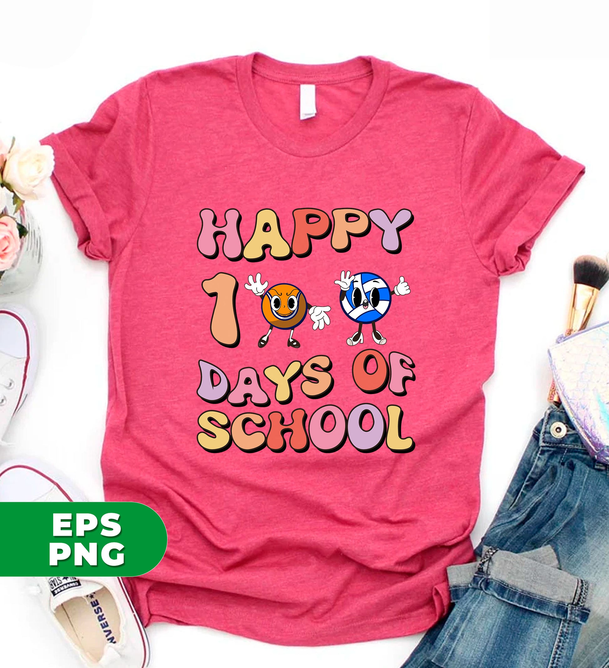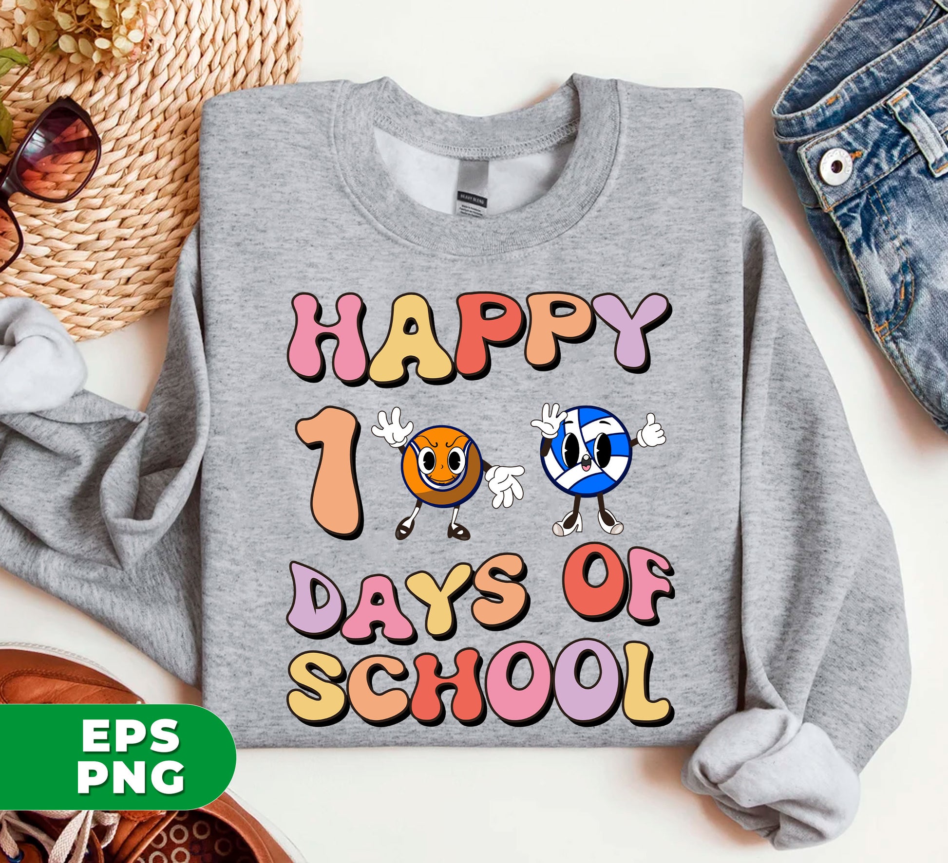 Happy 100 Days Of School, Groovy School, Love Ball, Digital Files, Png Sublimation