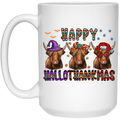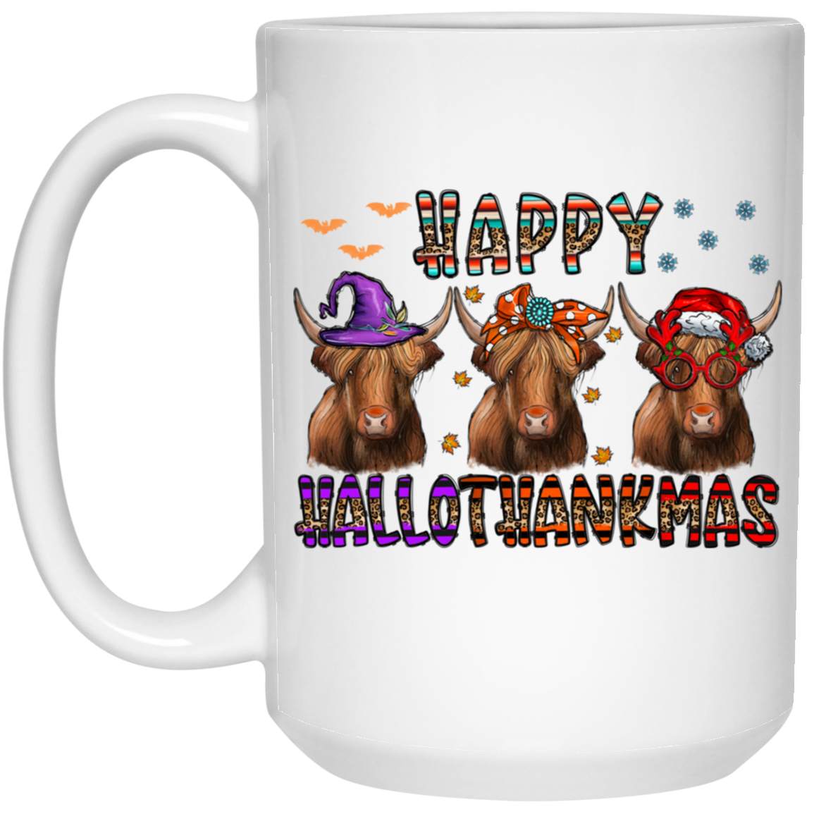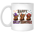Happy Halloween Happy Thanks Giving Merry Christmas 3 Buffallo White Mug