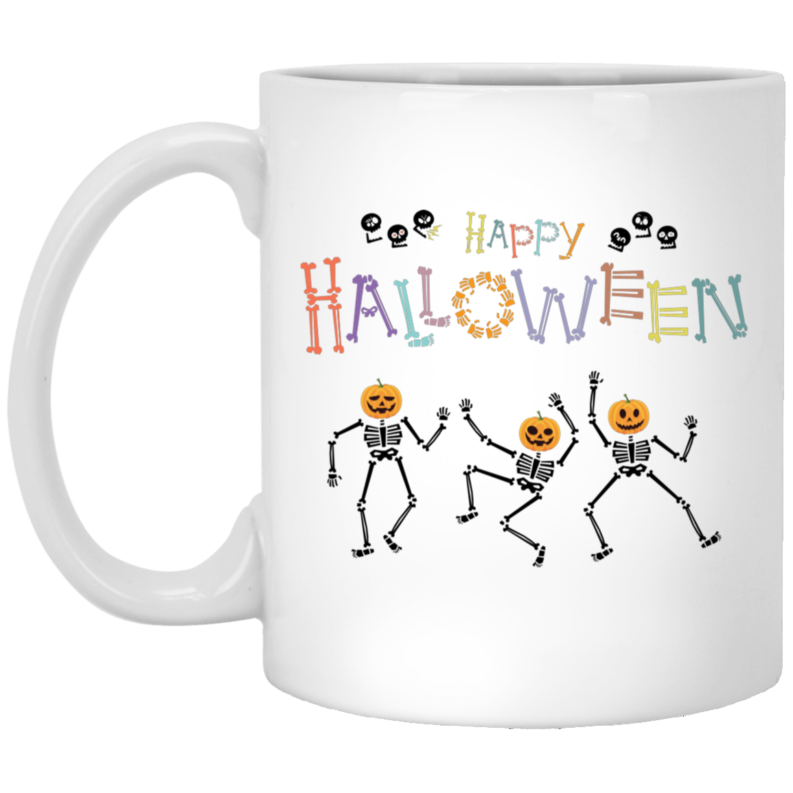 Happy Halloween, Skeleton Dancing, Trendy Halloween White Mug