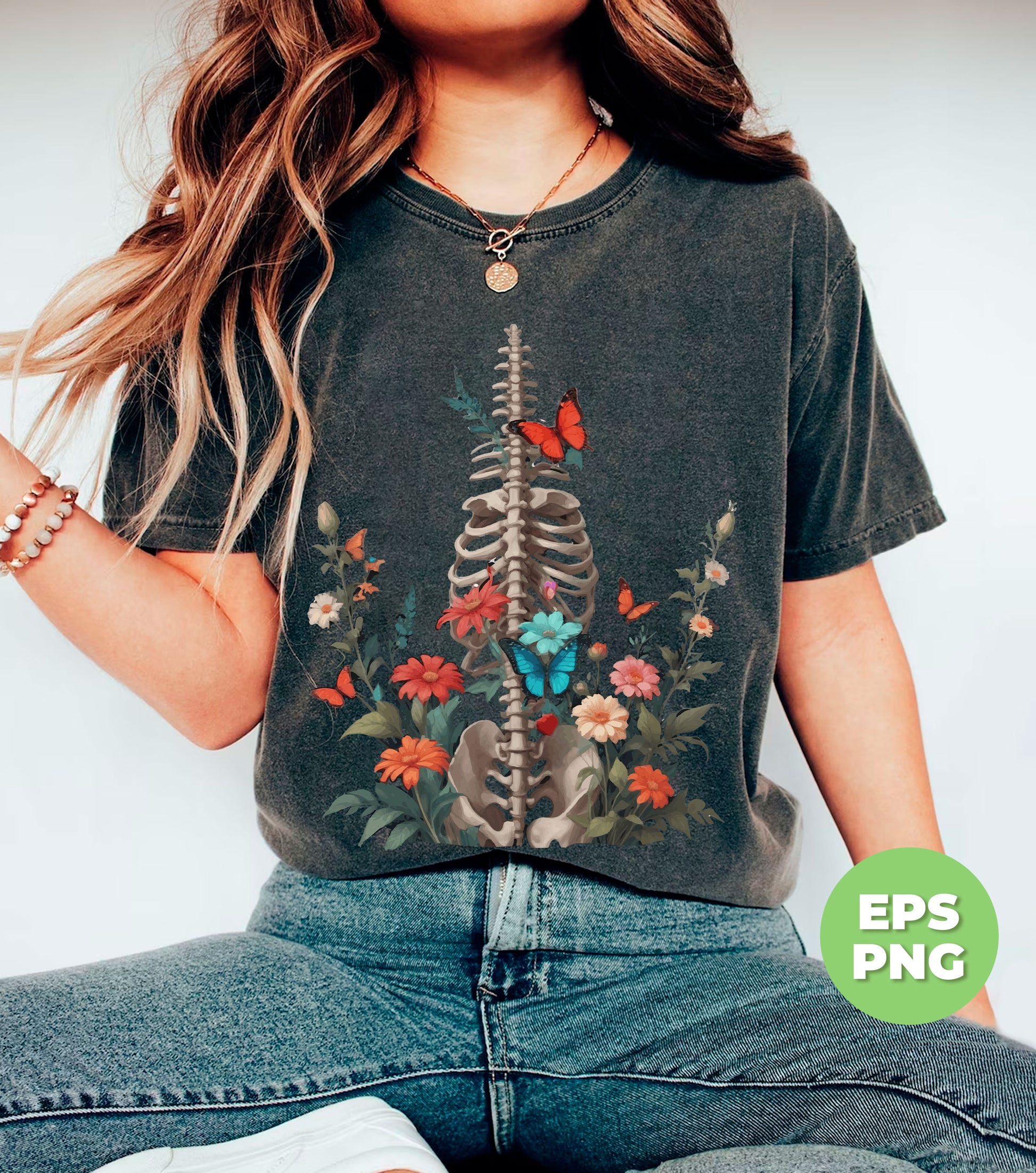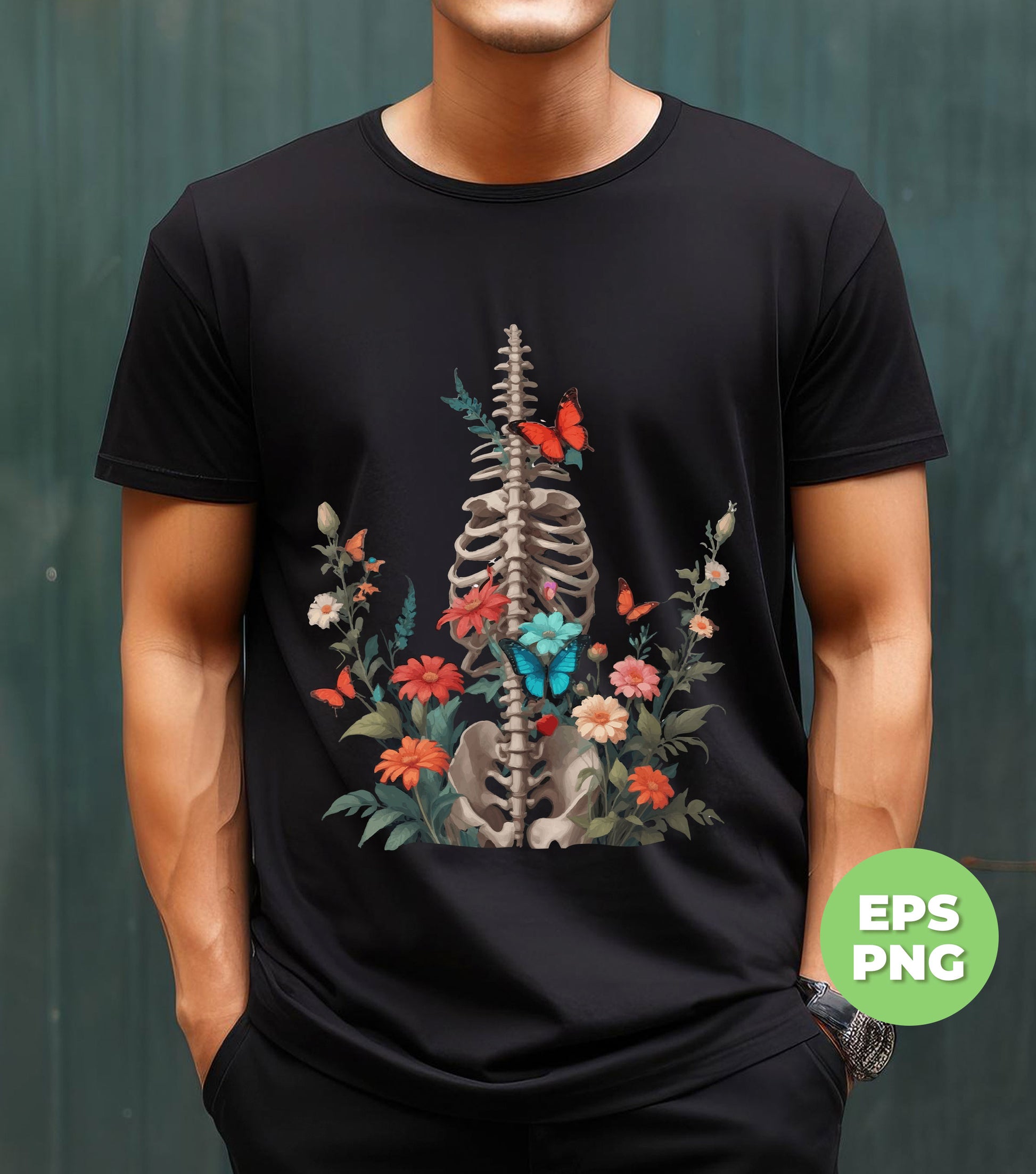 Happy Halloween, Skull And Butterfly, Flower Halloween, Skeleton And Flower, Digital Files, Png Sublimation