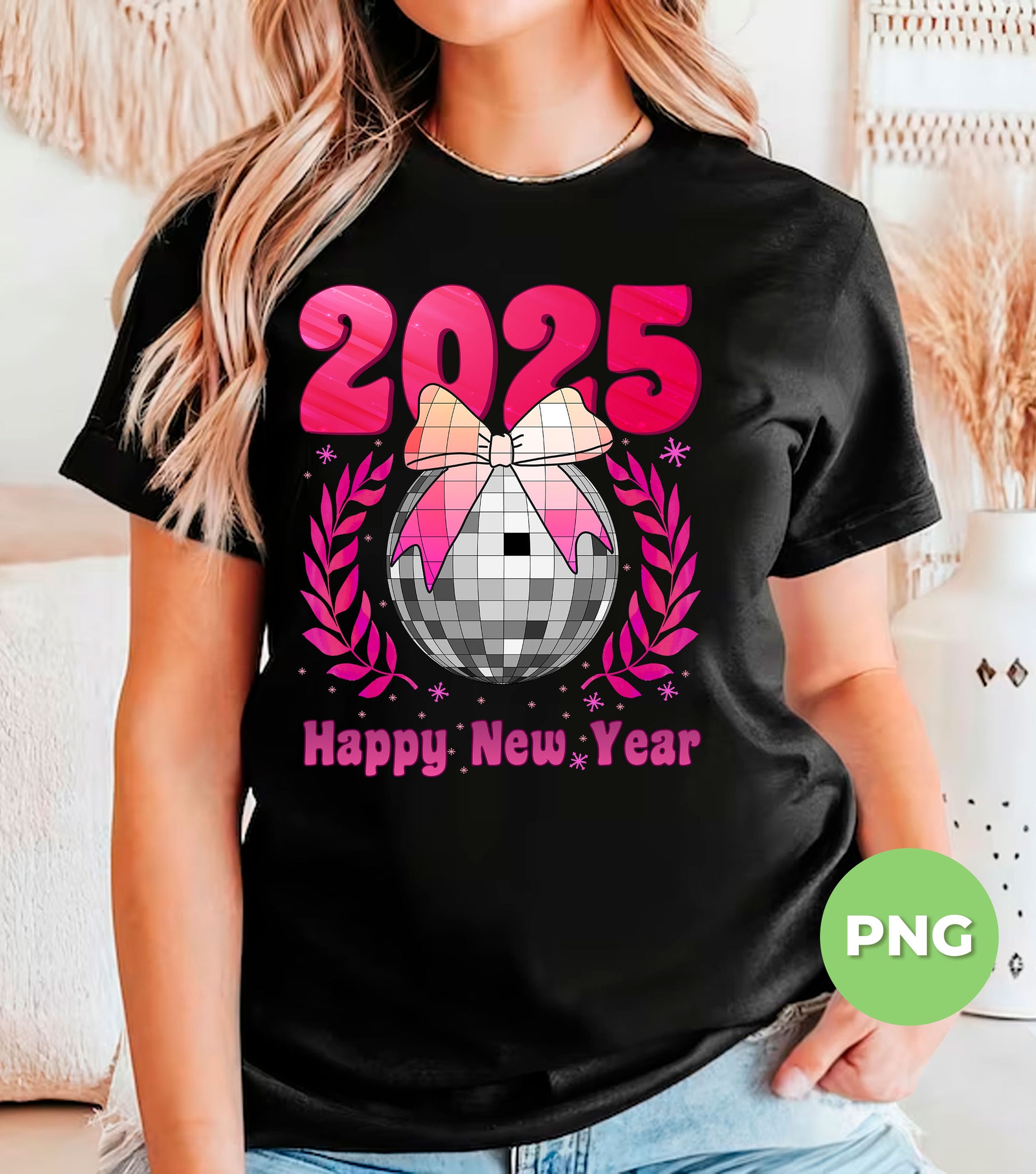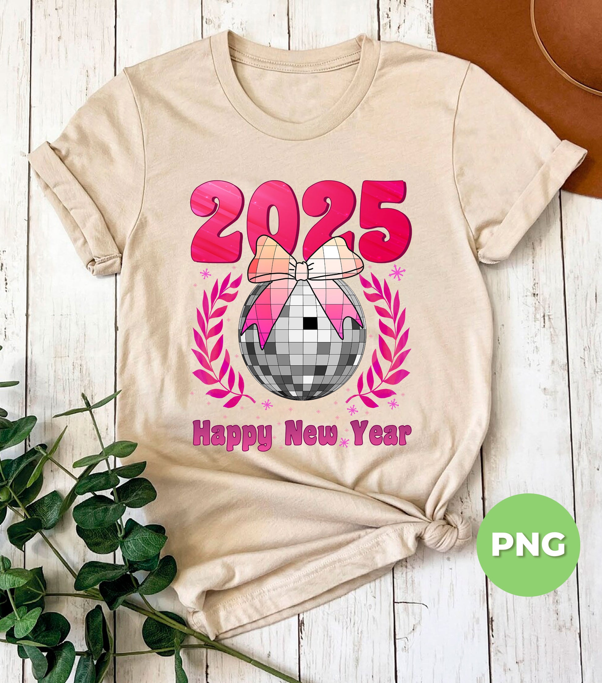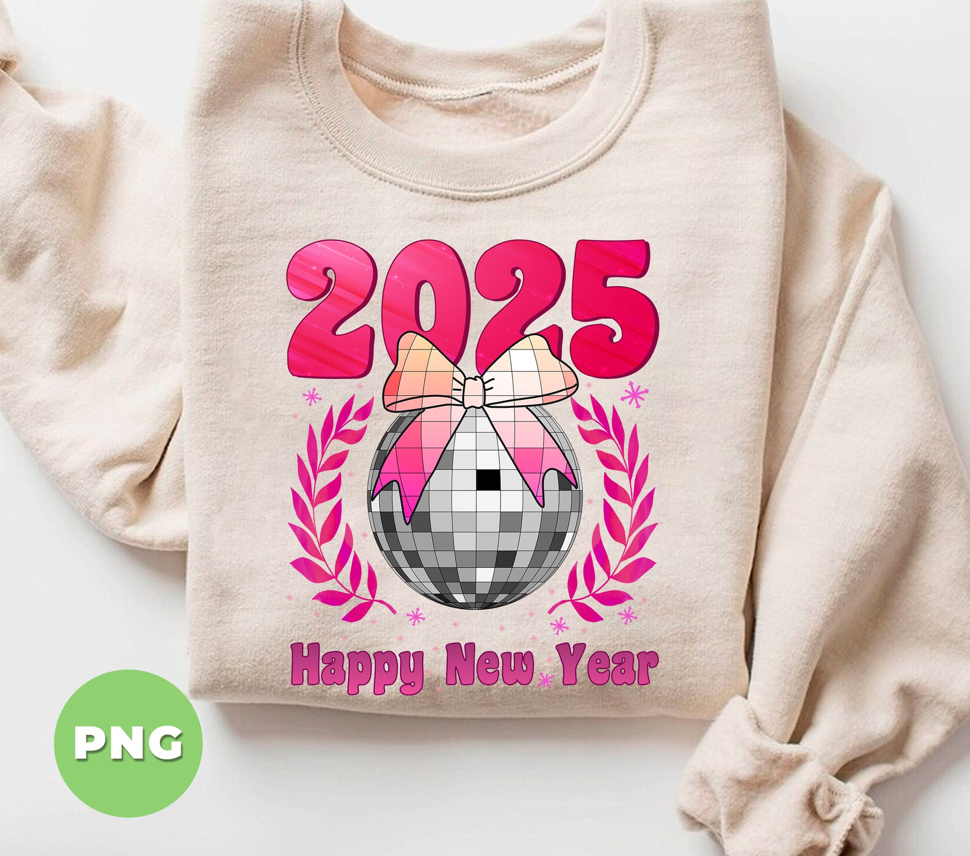 Happy New Year 2025, Disco Ball, Pinky Disco Ball, Digital Files, Png Sublimation