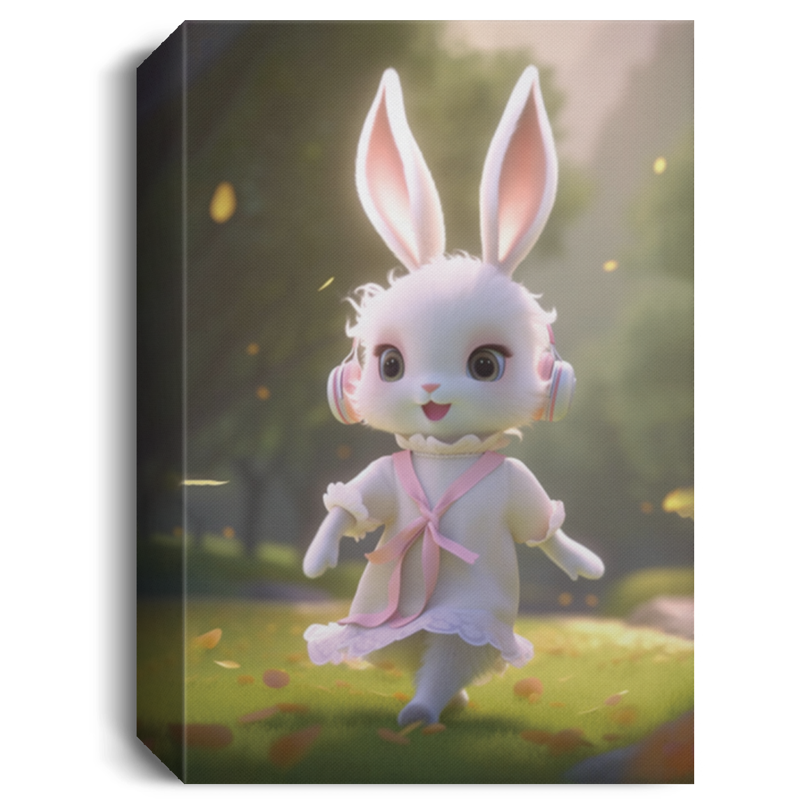 Happy Rabbit, Cute Bunny With White Fur, Dress Up A Student, Listening To Music Canvas