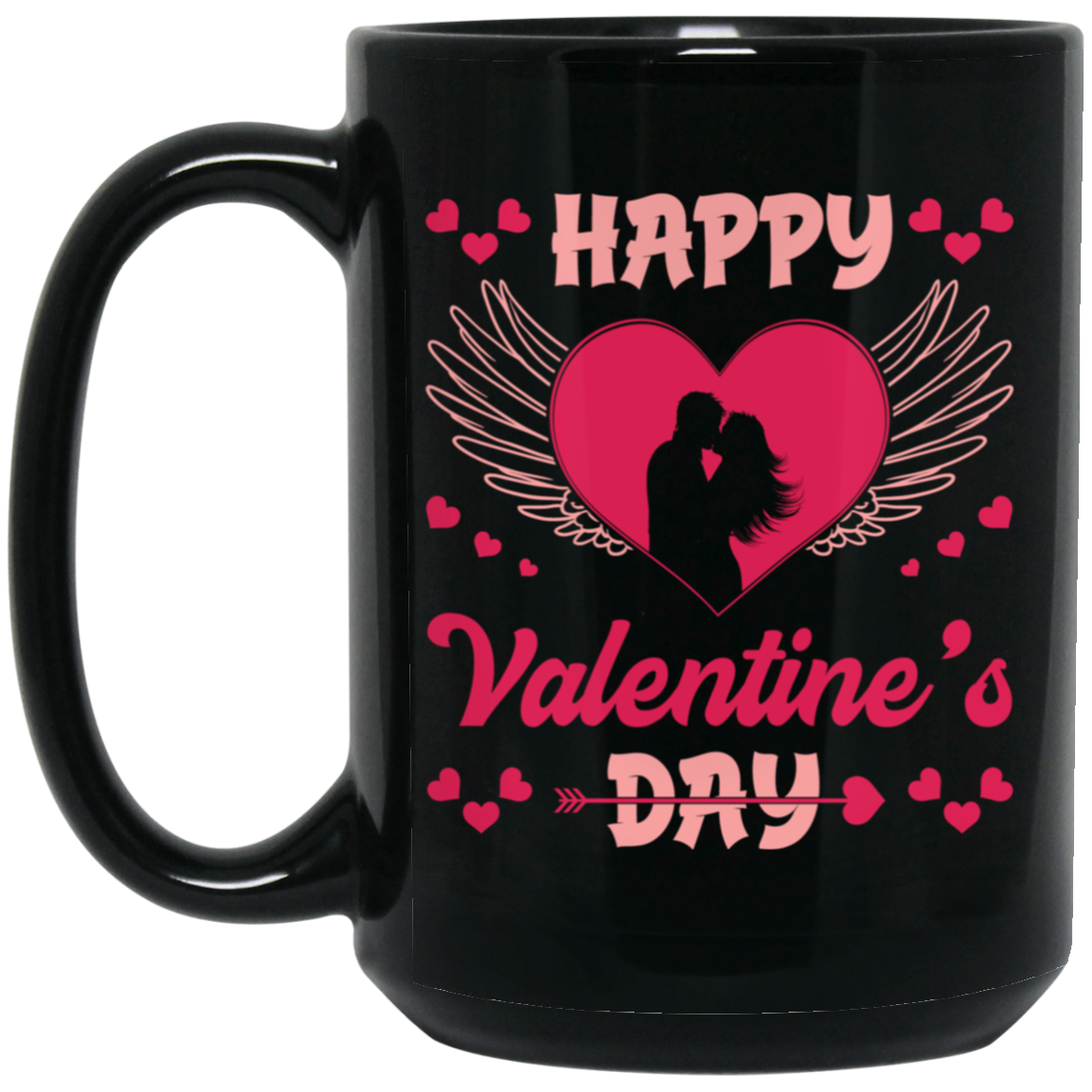 Happy Valentine's Day, Heart Swings, Pink Valentine Black Mug