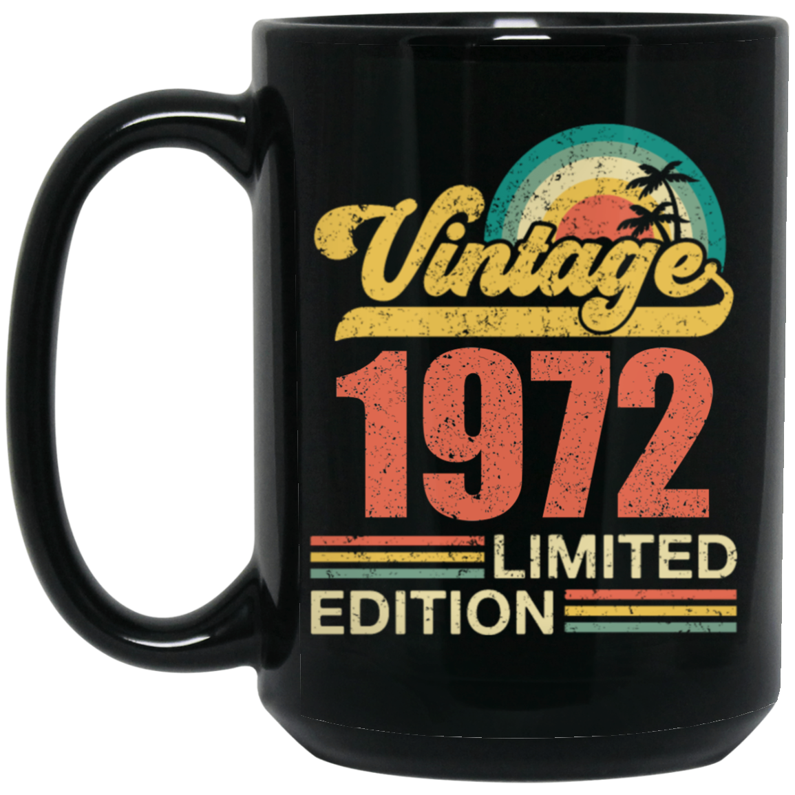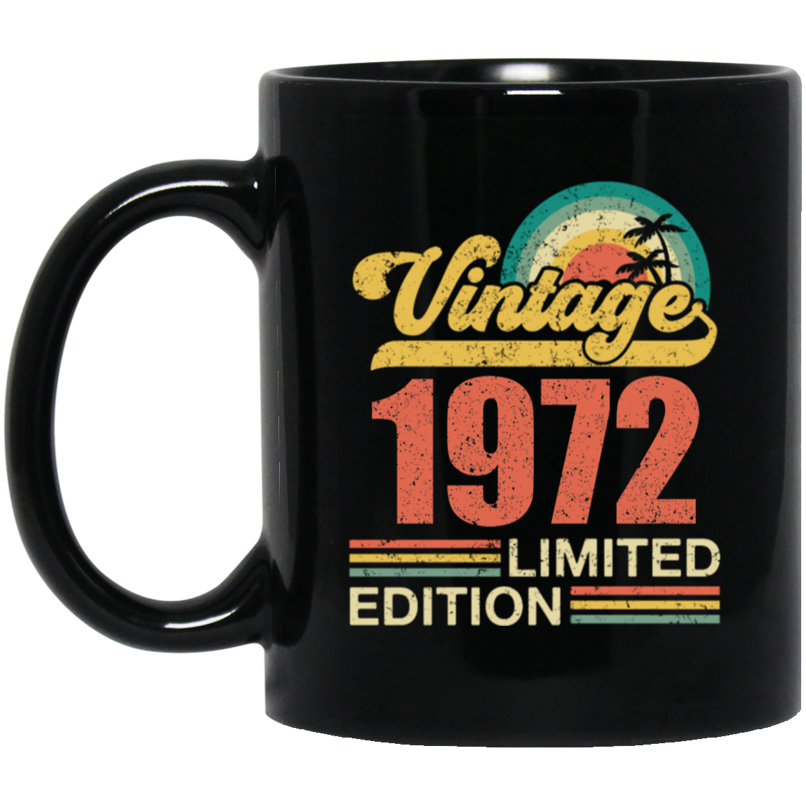 Hawaii 1972 Gift, Vintage 1972 Limited Gift, Retro 1972, Tropical Style Black Mug