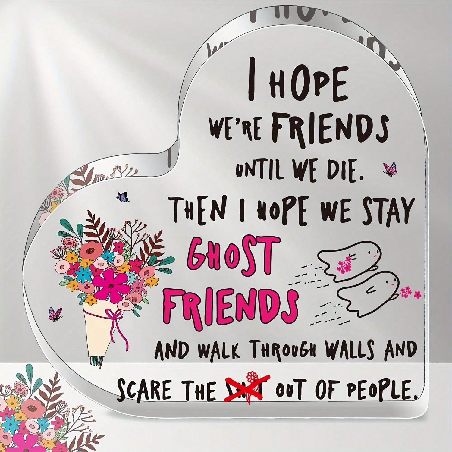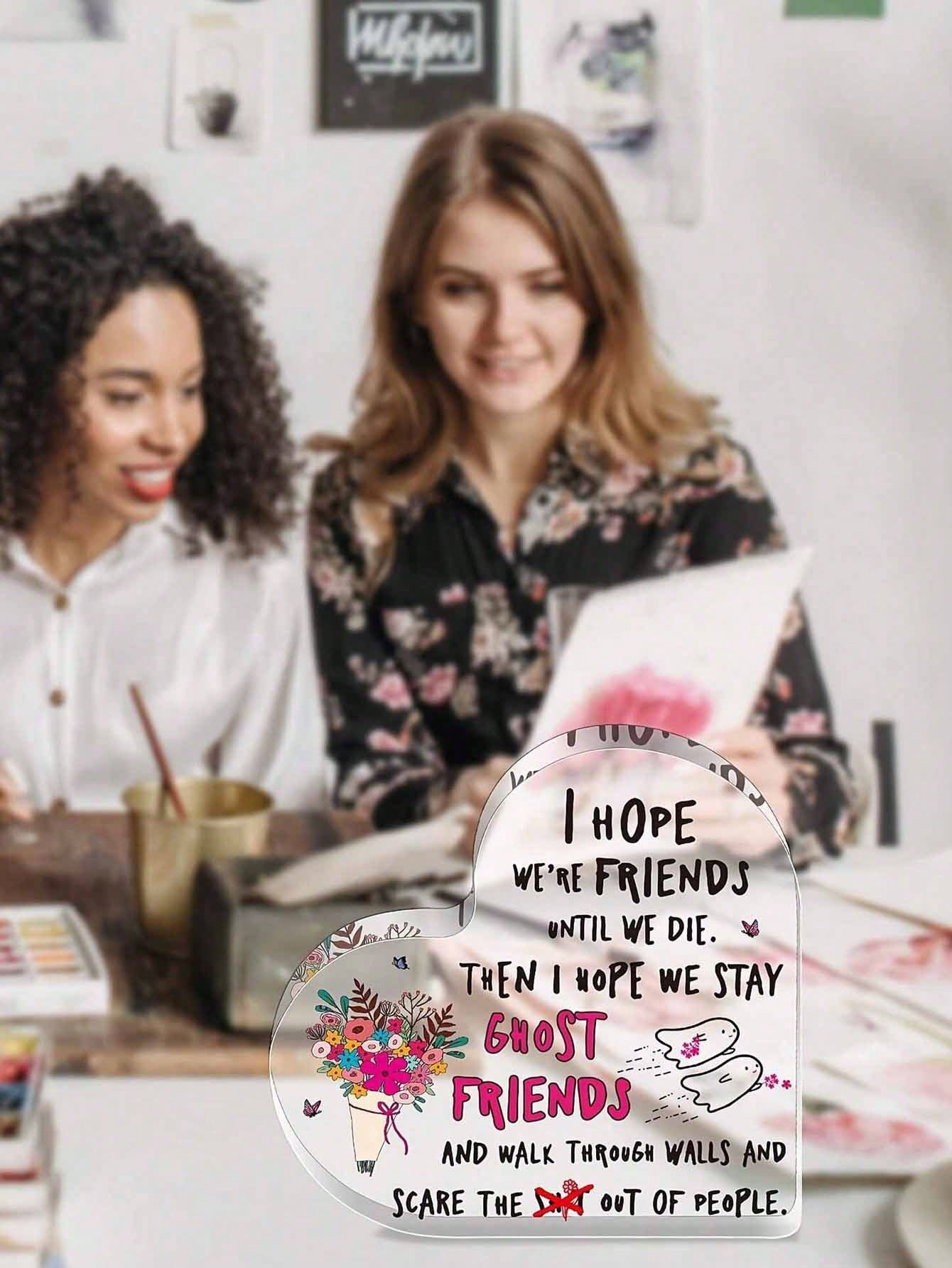 Heartfelt Friendship: Funny Heart-Shaped Acrylic Plaque Gift for Best Friends & Sisters