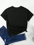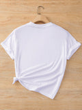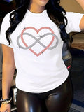 Heartfelt Glamour: Women's Rhinestone-Embellished Heart Patterned T-Shirt