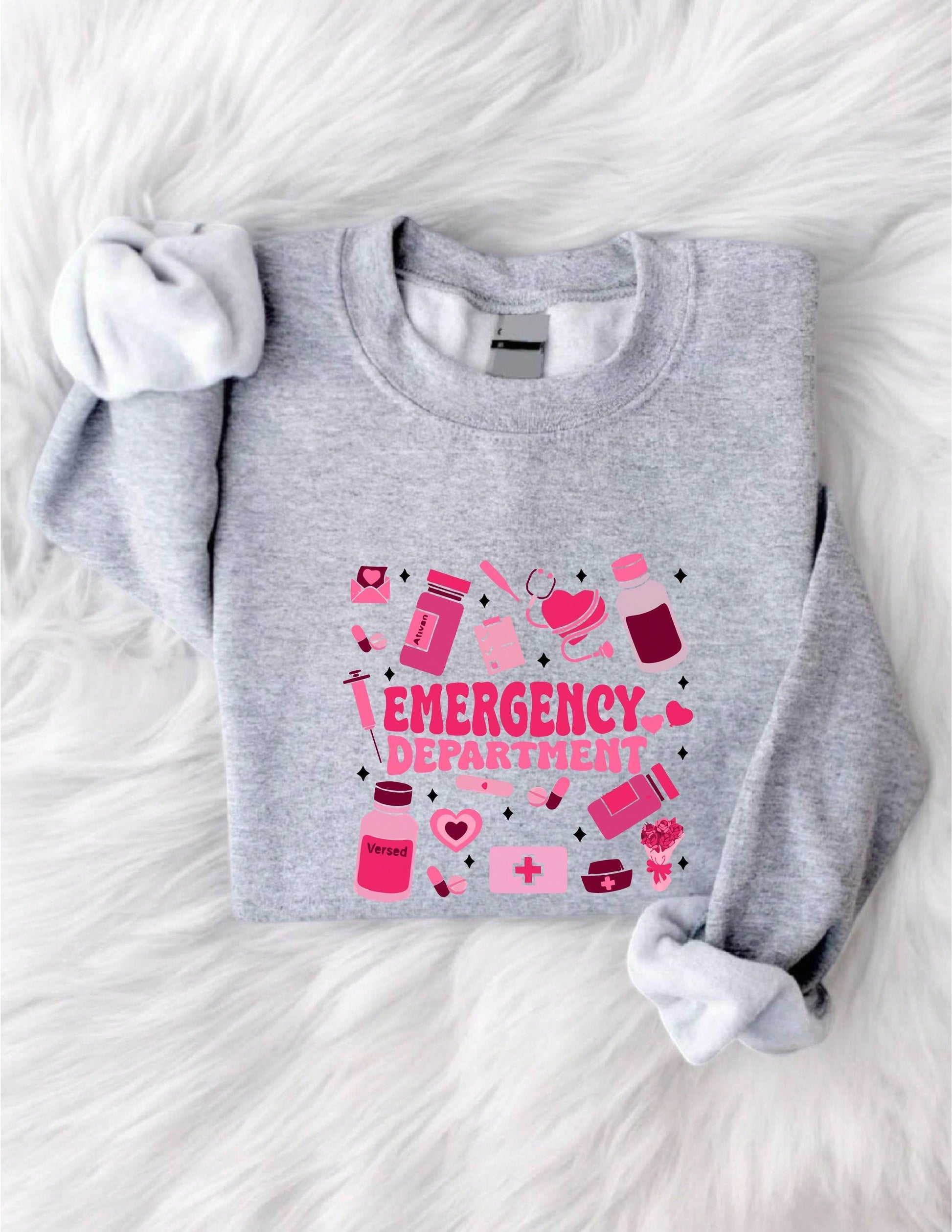 Spread some love this Valentine's Day with our Heartfelt Vibes sweatshirt! Featuring a sweet design that pays tribute to our Emergency Department Nurses, this sweatshirt is perfect for adding some warmth and appreciation to their hardworking shifts. Show your heartfelt gratitude with this unique and cozy sweatshirt!