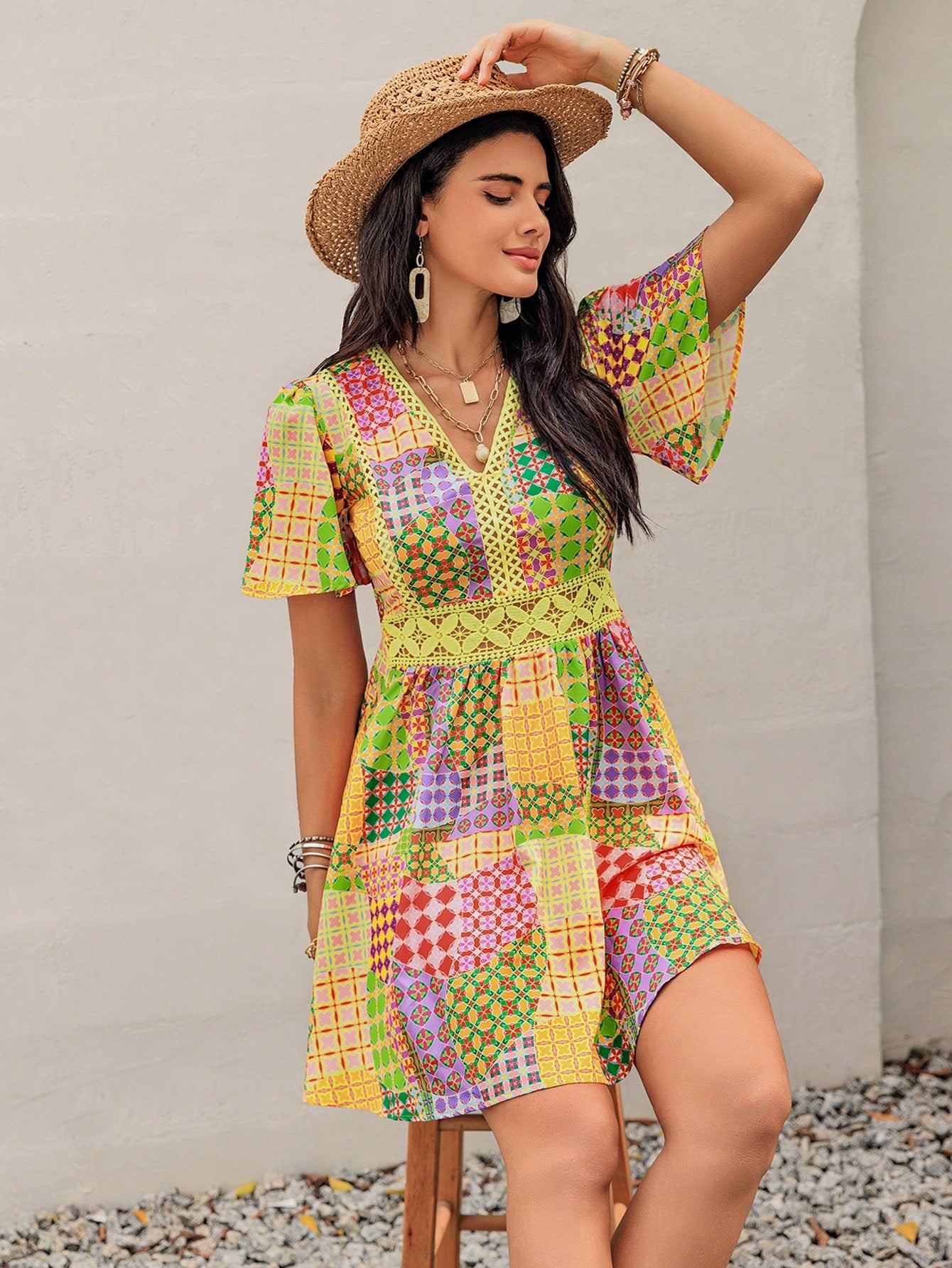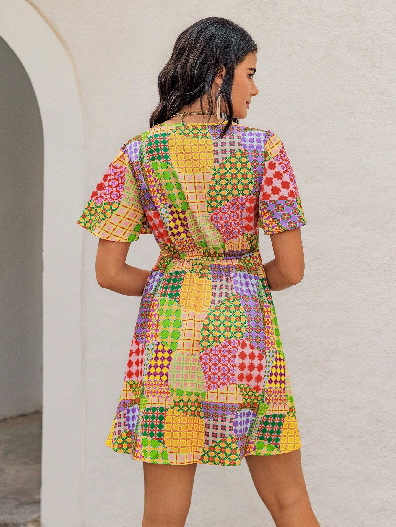 Holiday Patchwork Short Dress - Casual Chic for Any Occasion