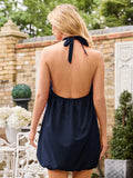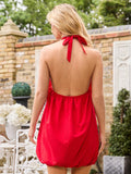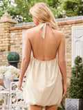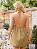 Holiday Style Solid Color Halter Neck Backless Short Dress for Women