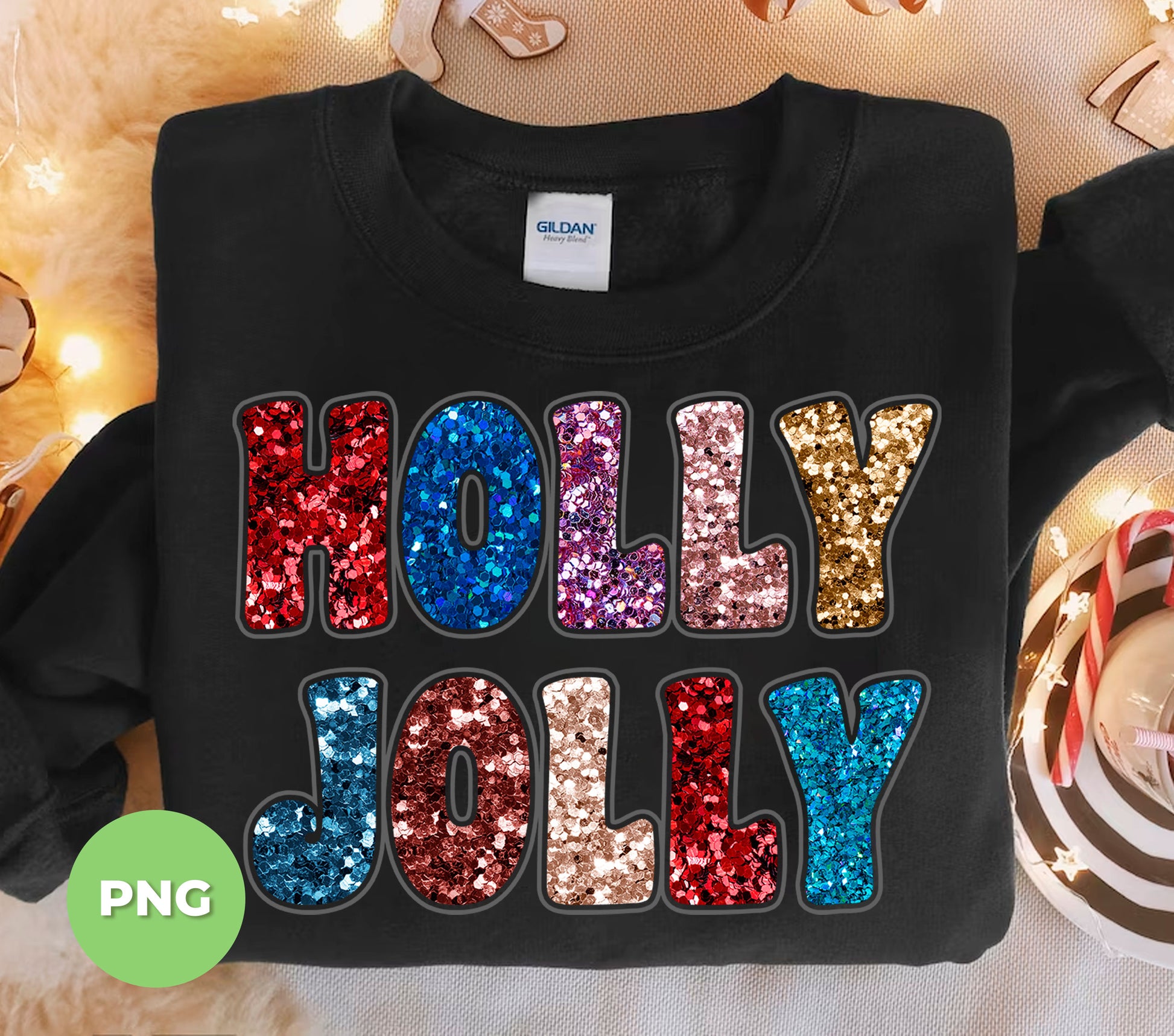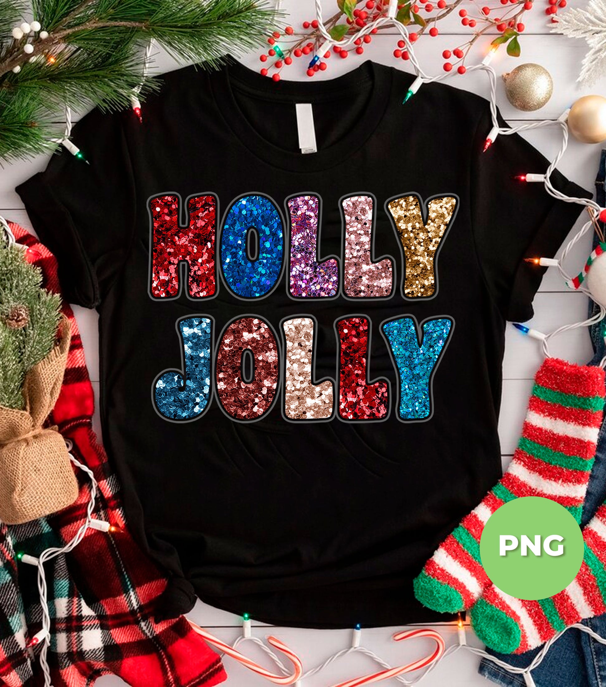 Holly Jolly, Sequin Holly Jolly, Blink Glitter Christmas, Digital Files, Png Sublimation