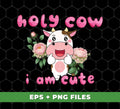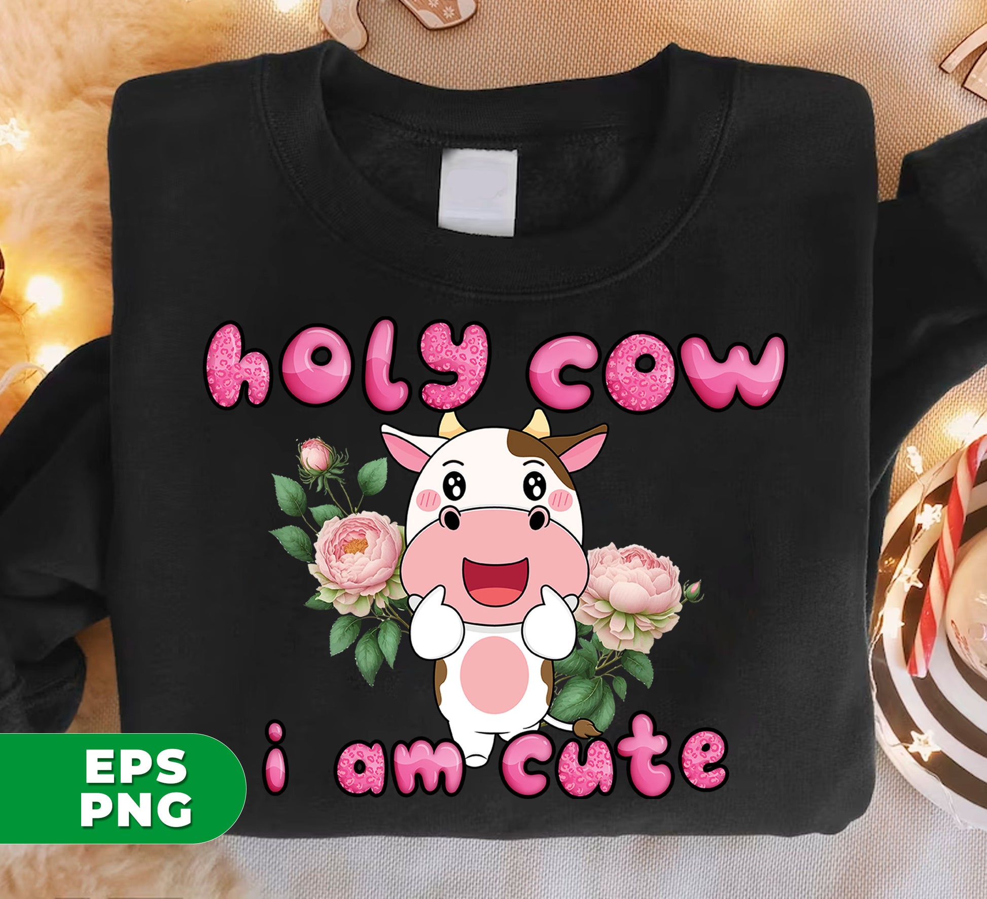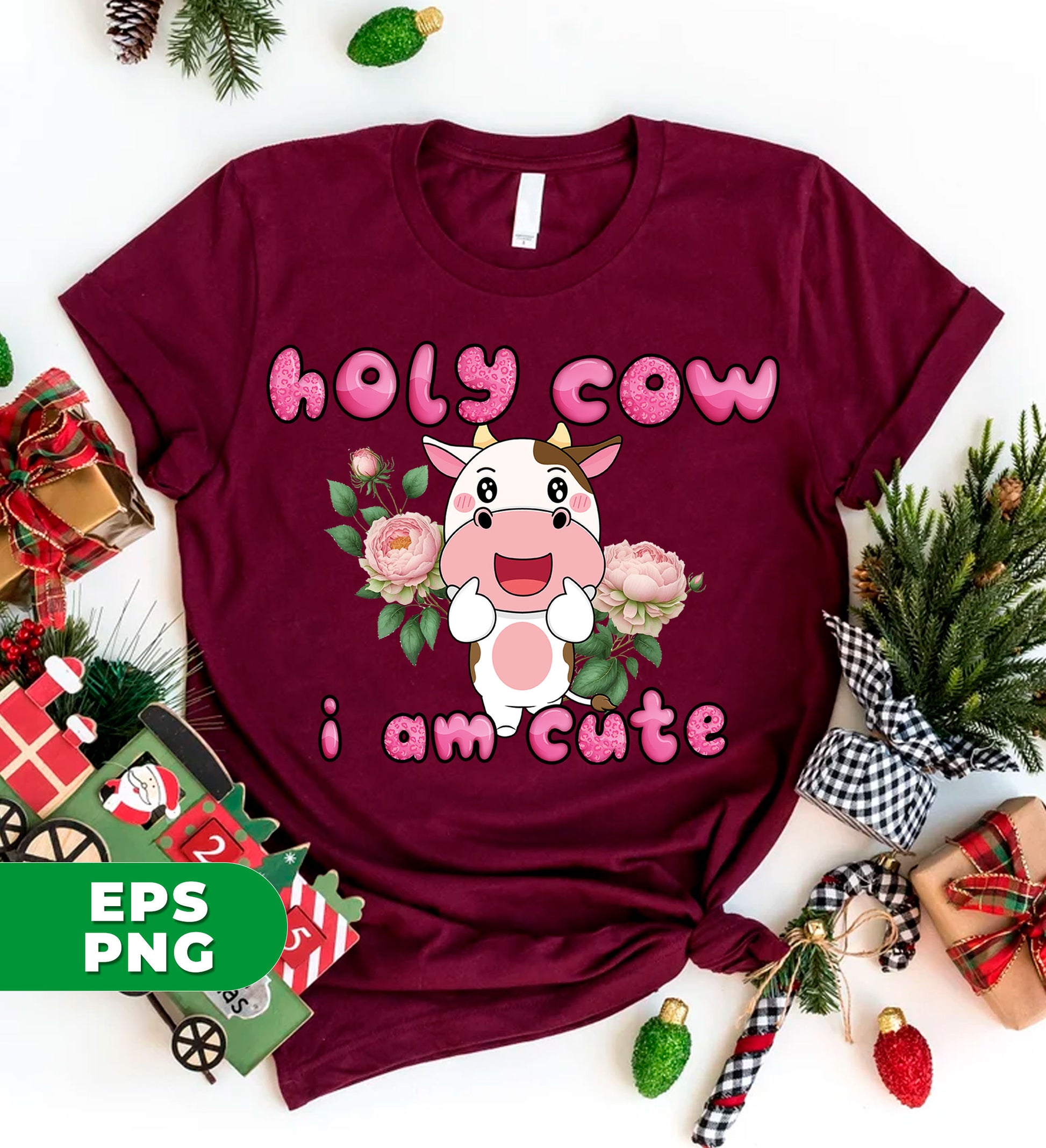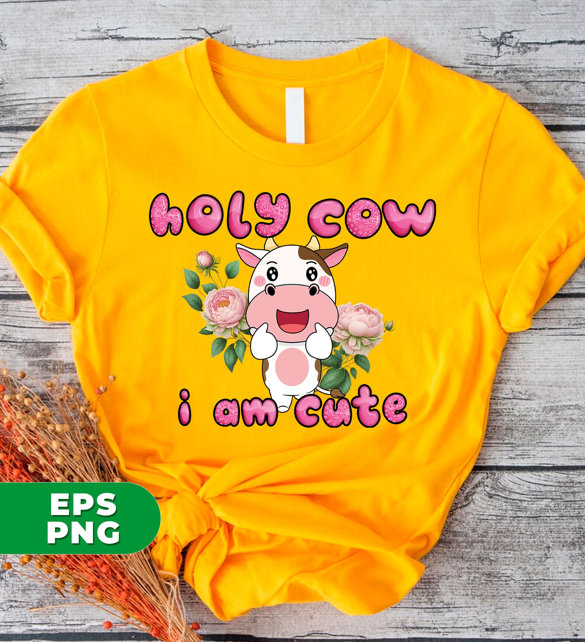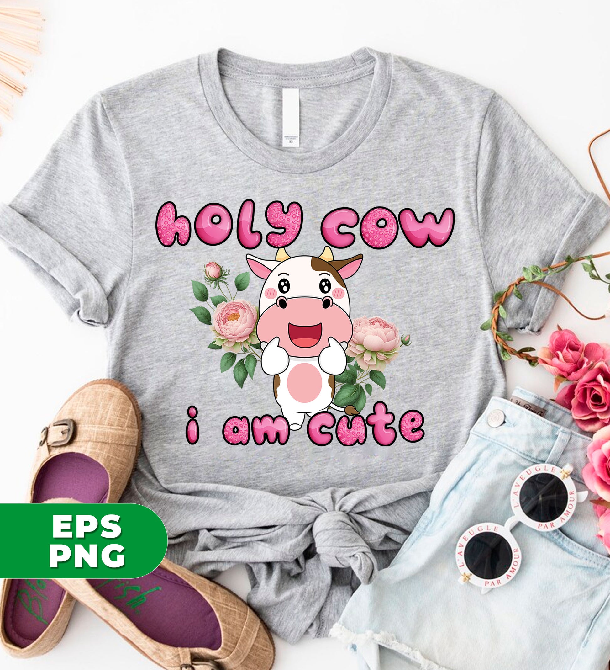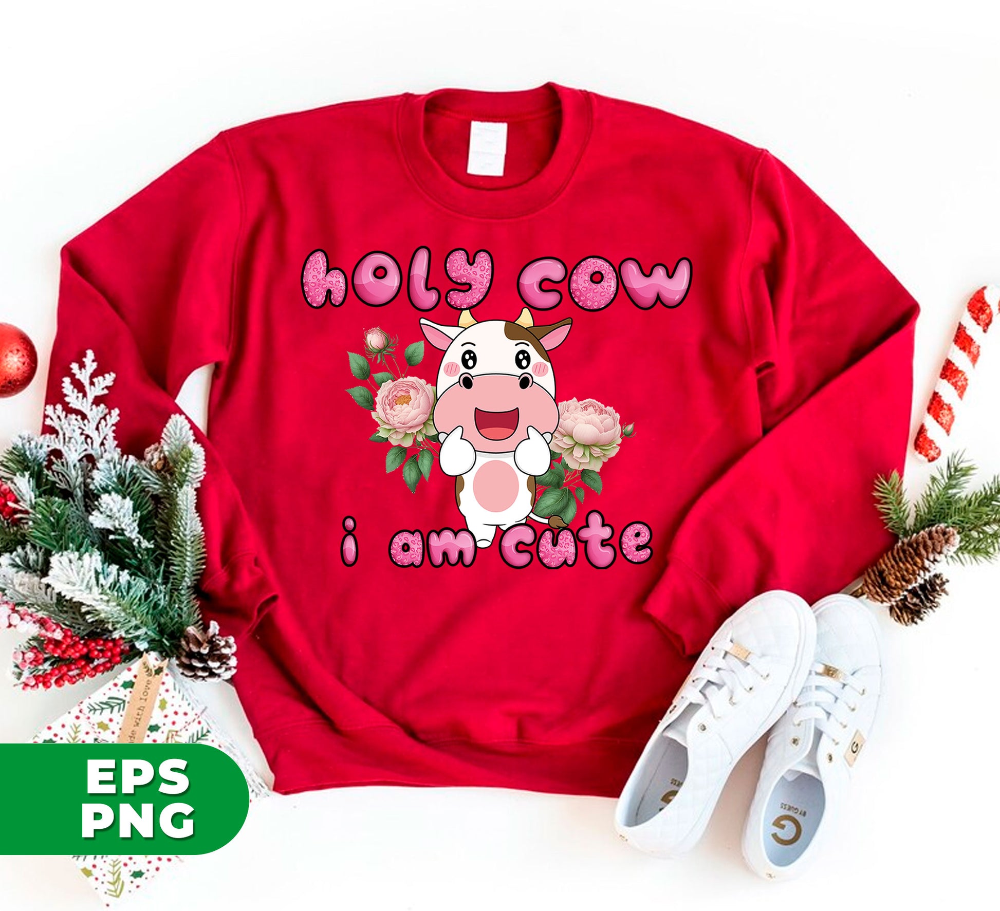 Holy Cow, I Am Cute, Cute Cow, Flower With Cow, Lovely Cow, Digital Files, Png Sublimation