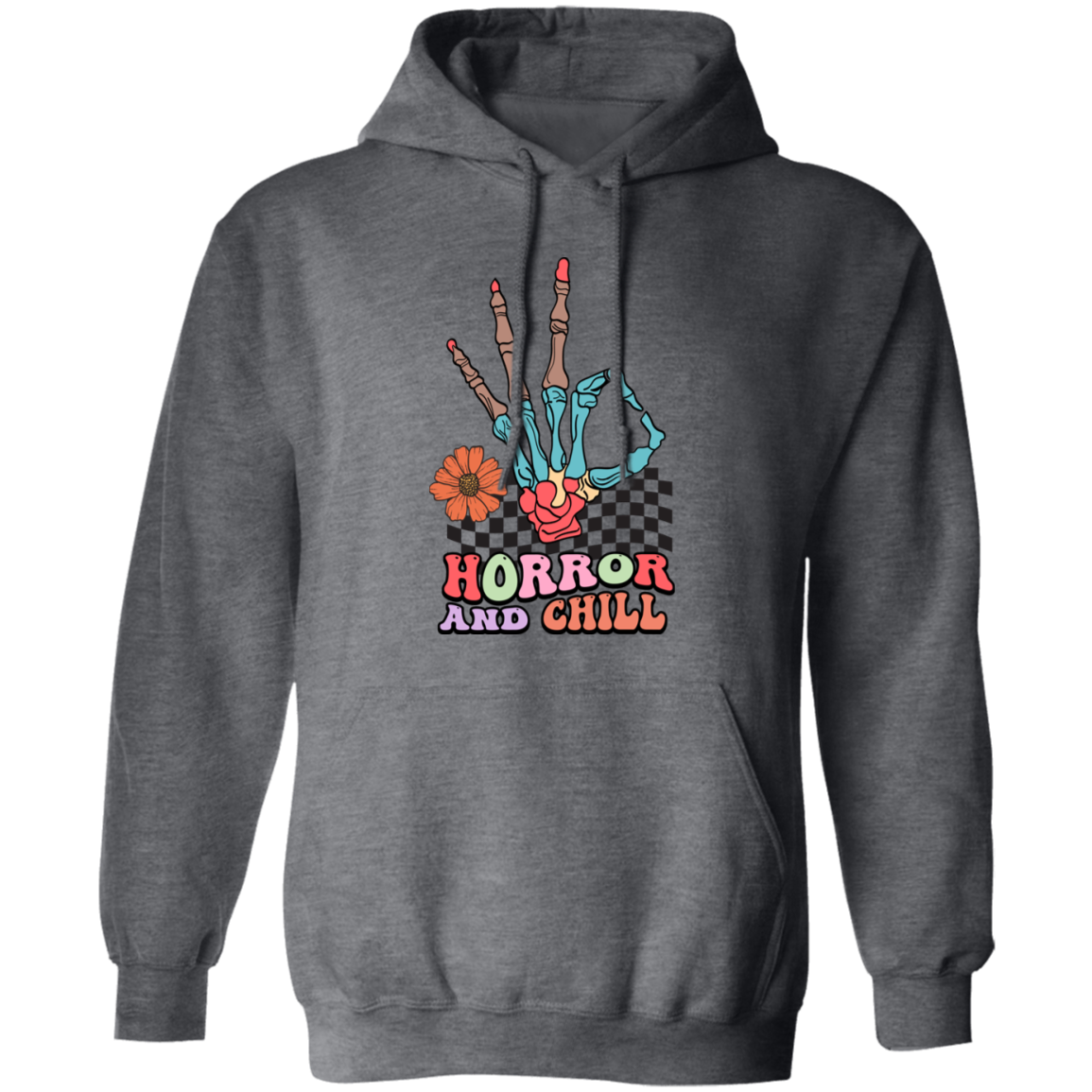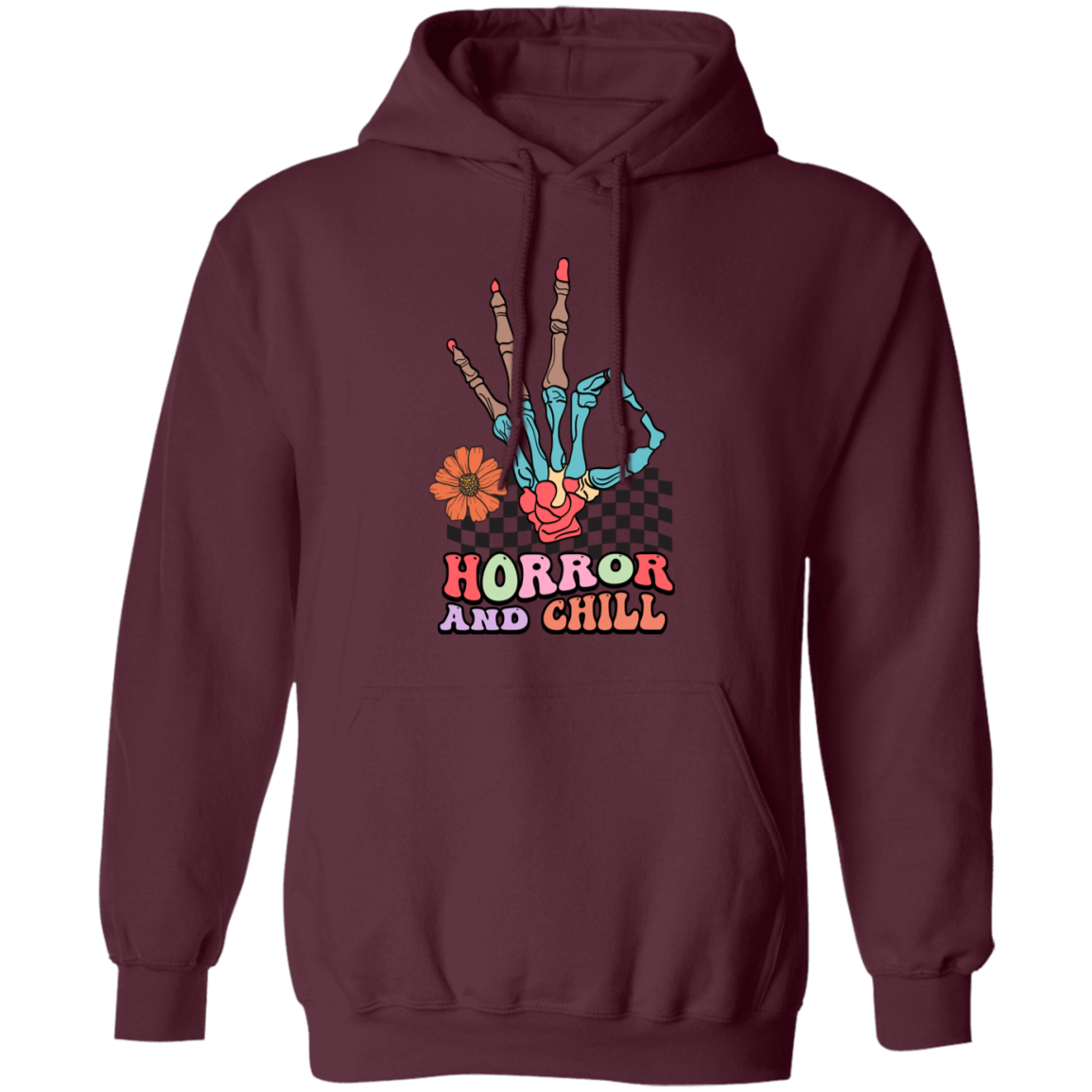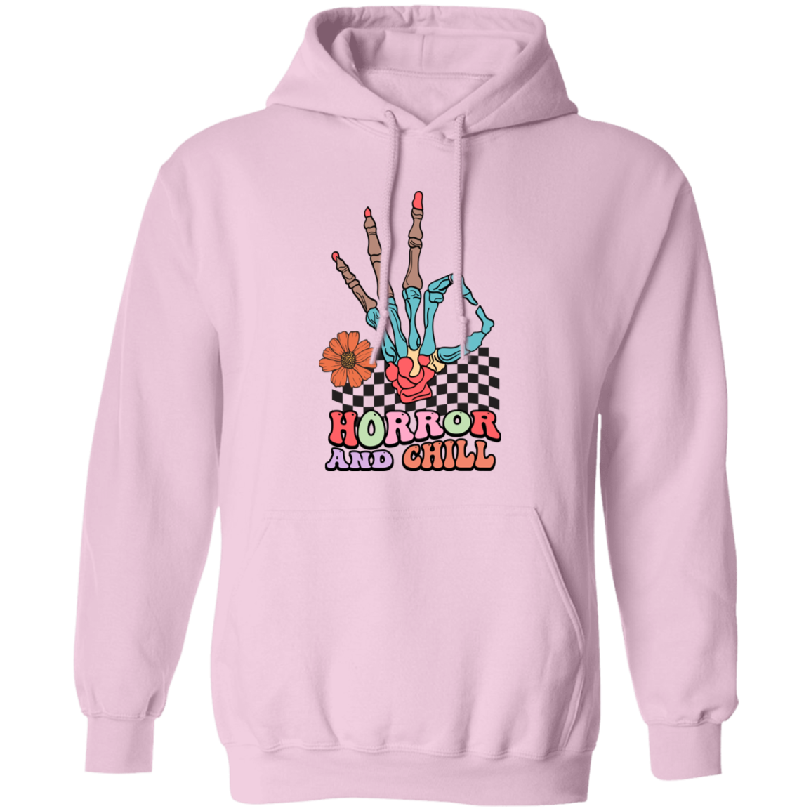 Horror And Chill, Skeleton Hand, Okay Sign, Groovy Skeleton Pullover Hoodie