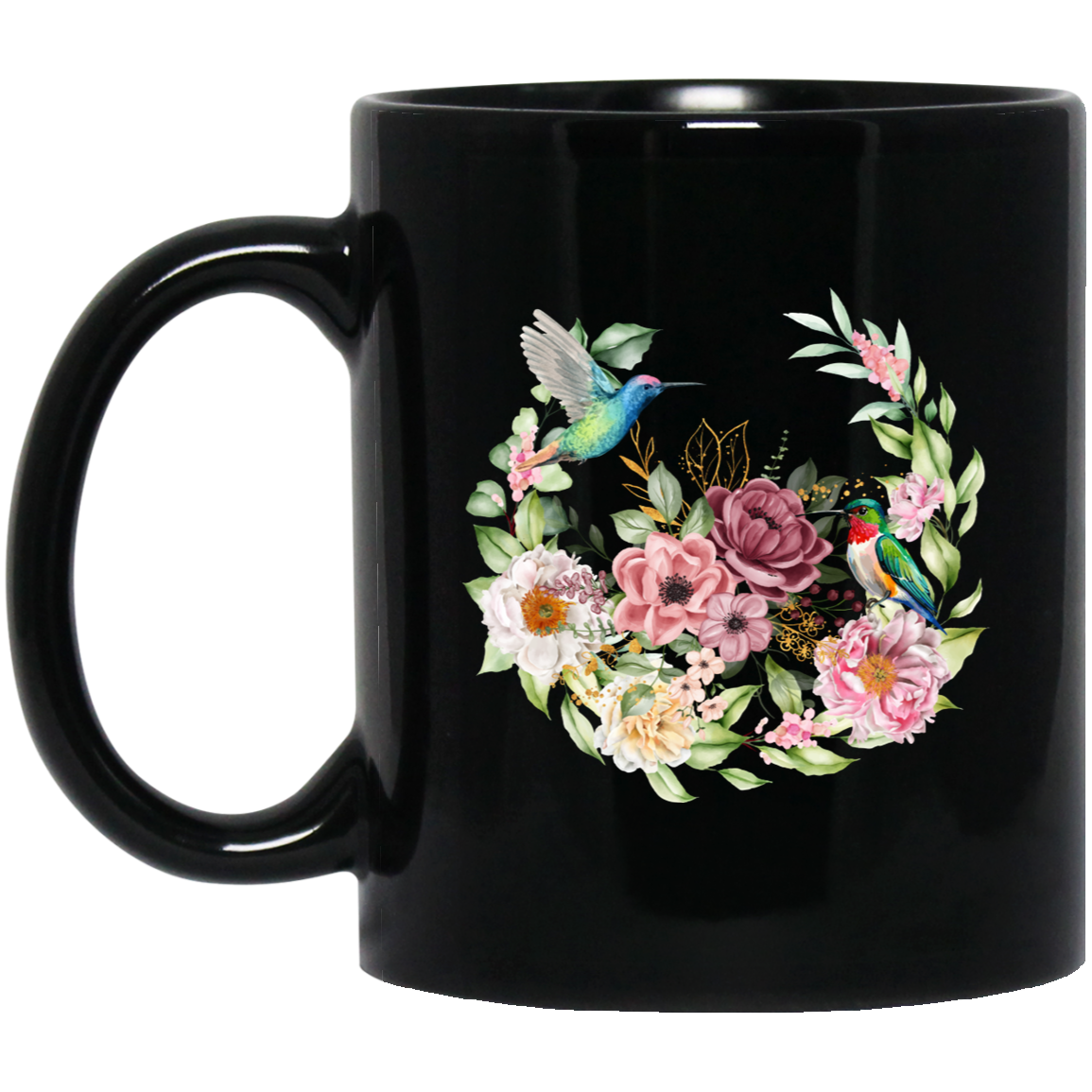 Hummingbird With Flower, Love Hummingbird, Beautiful Flowers Black Mug