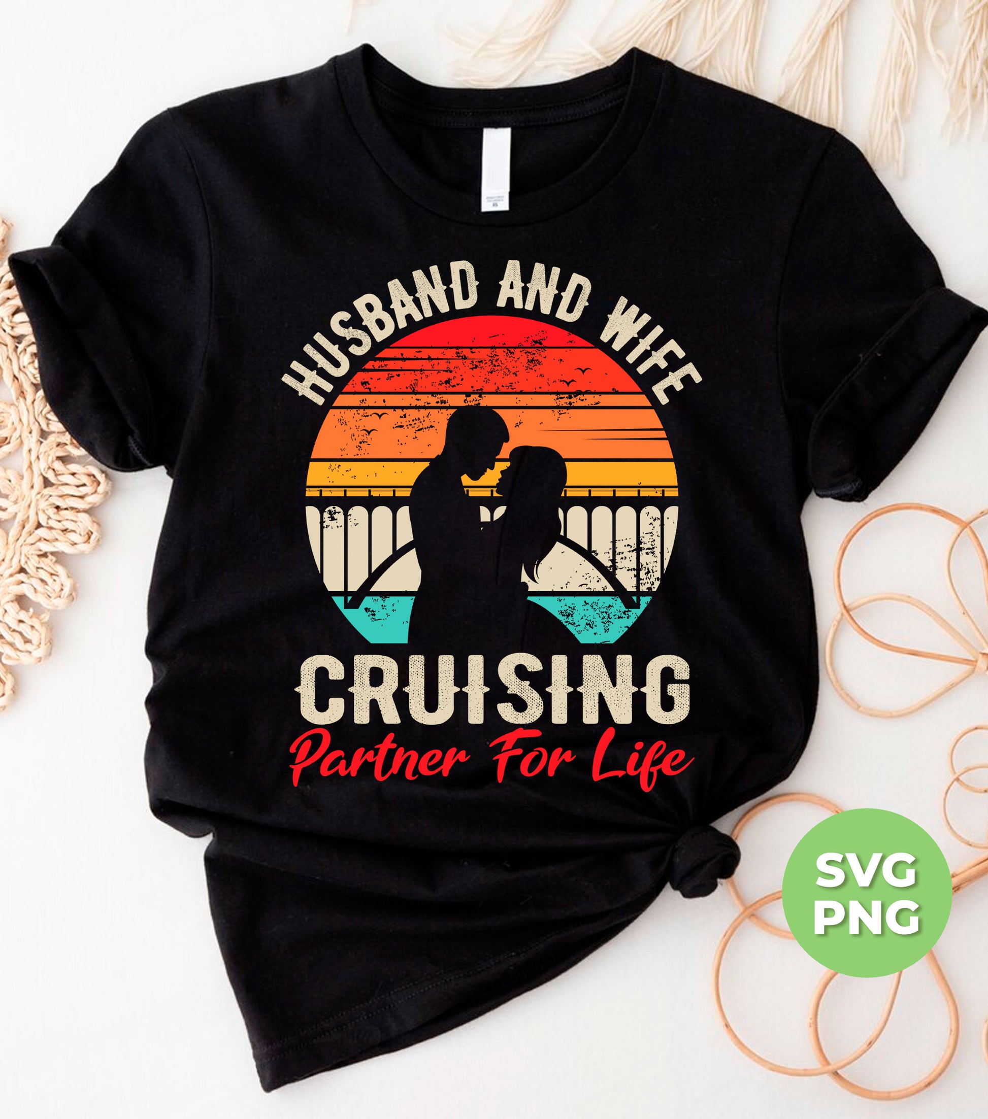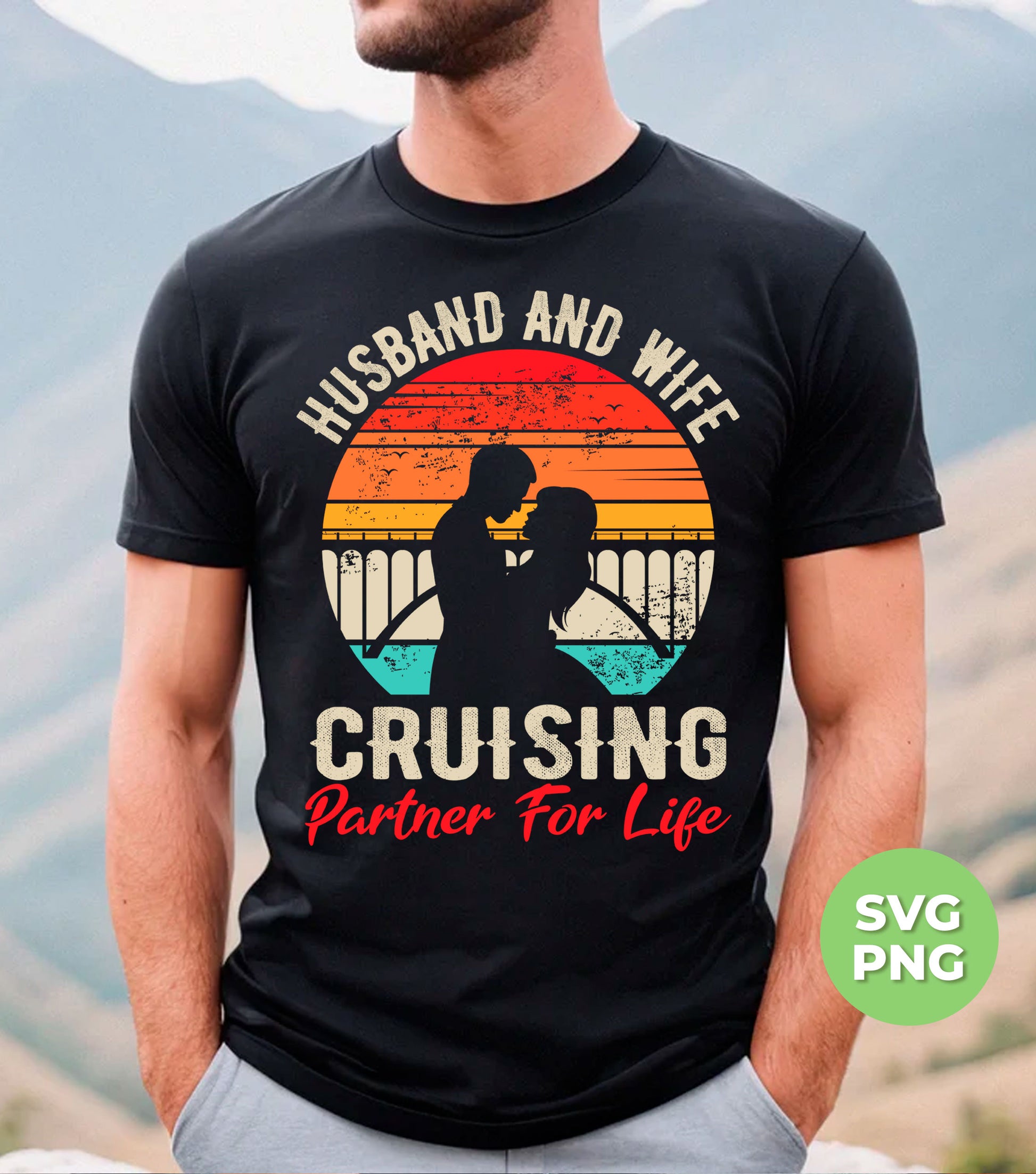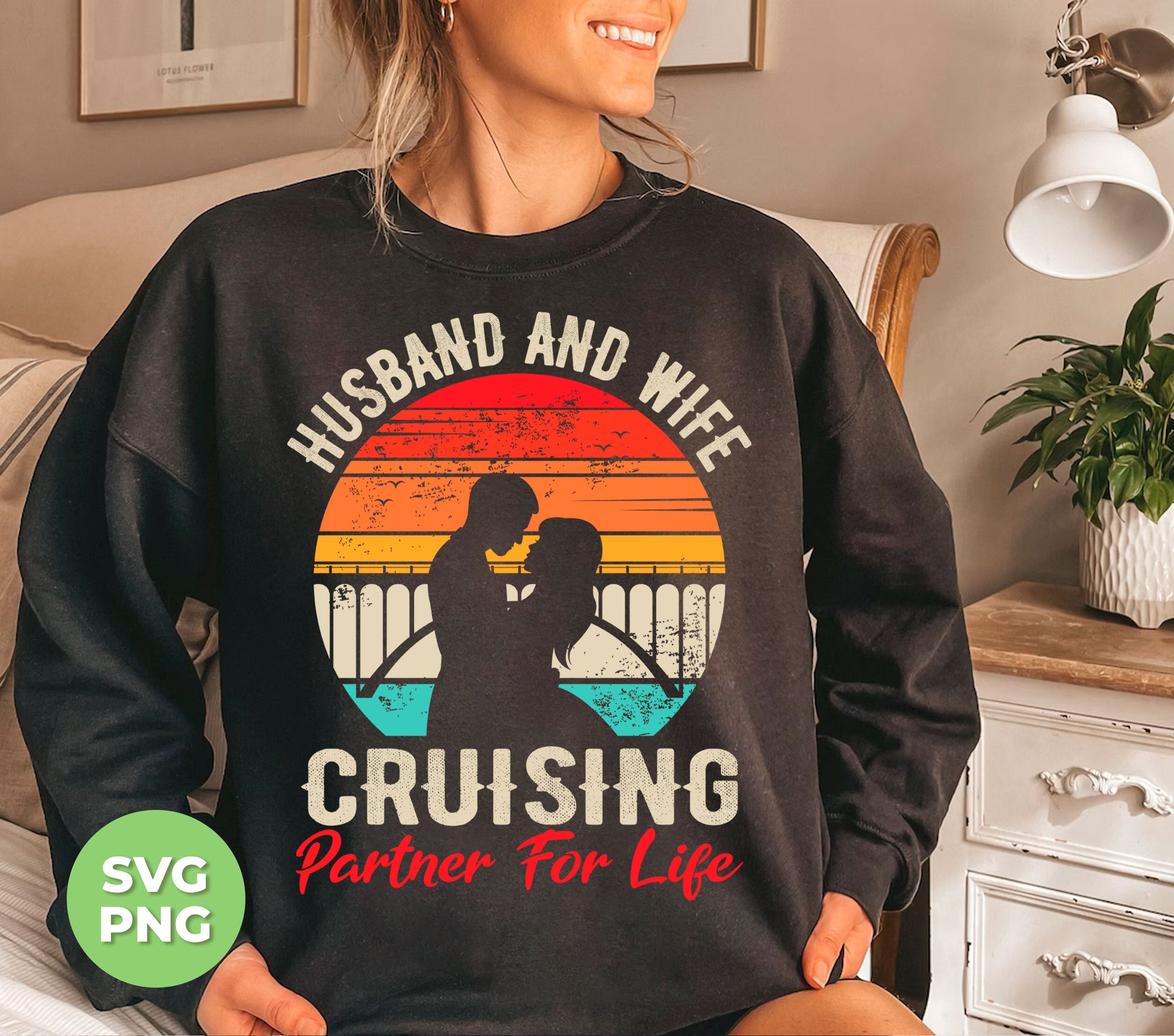 Husband And Wife Cruising Partner For Life, Retro Valentine, Couple Silhouette, Digital Files, Png Sublimation