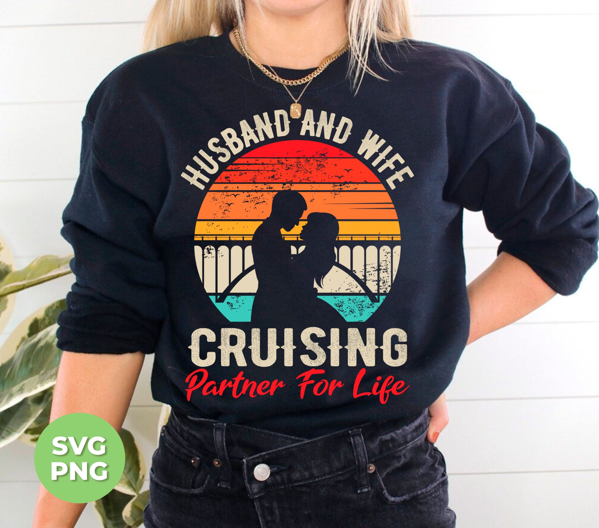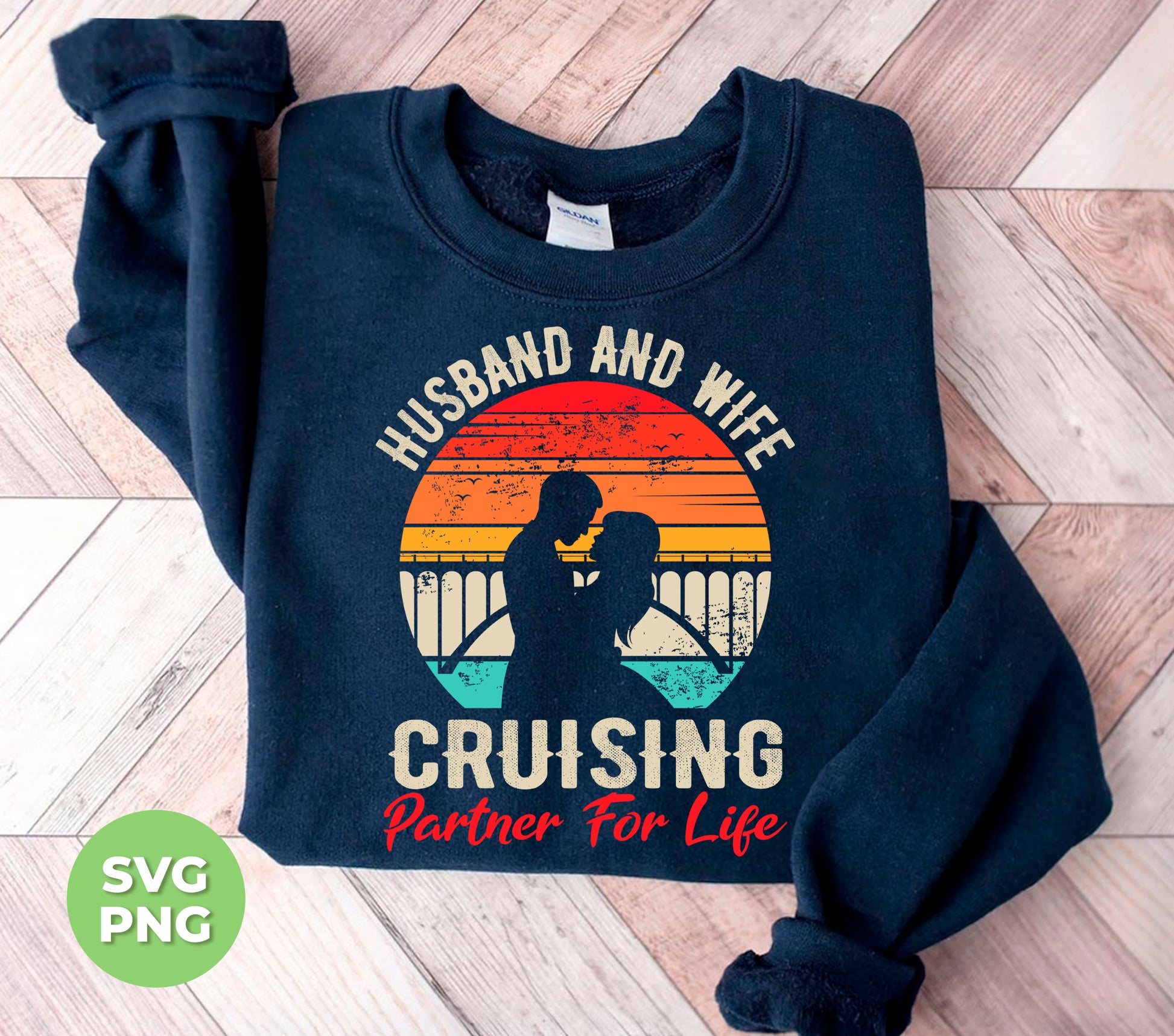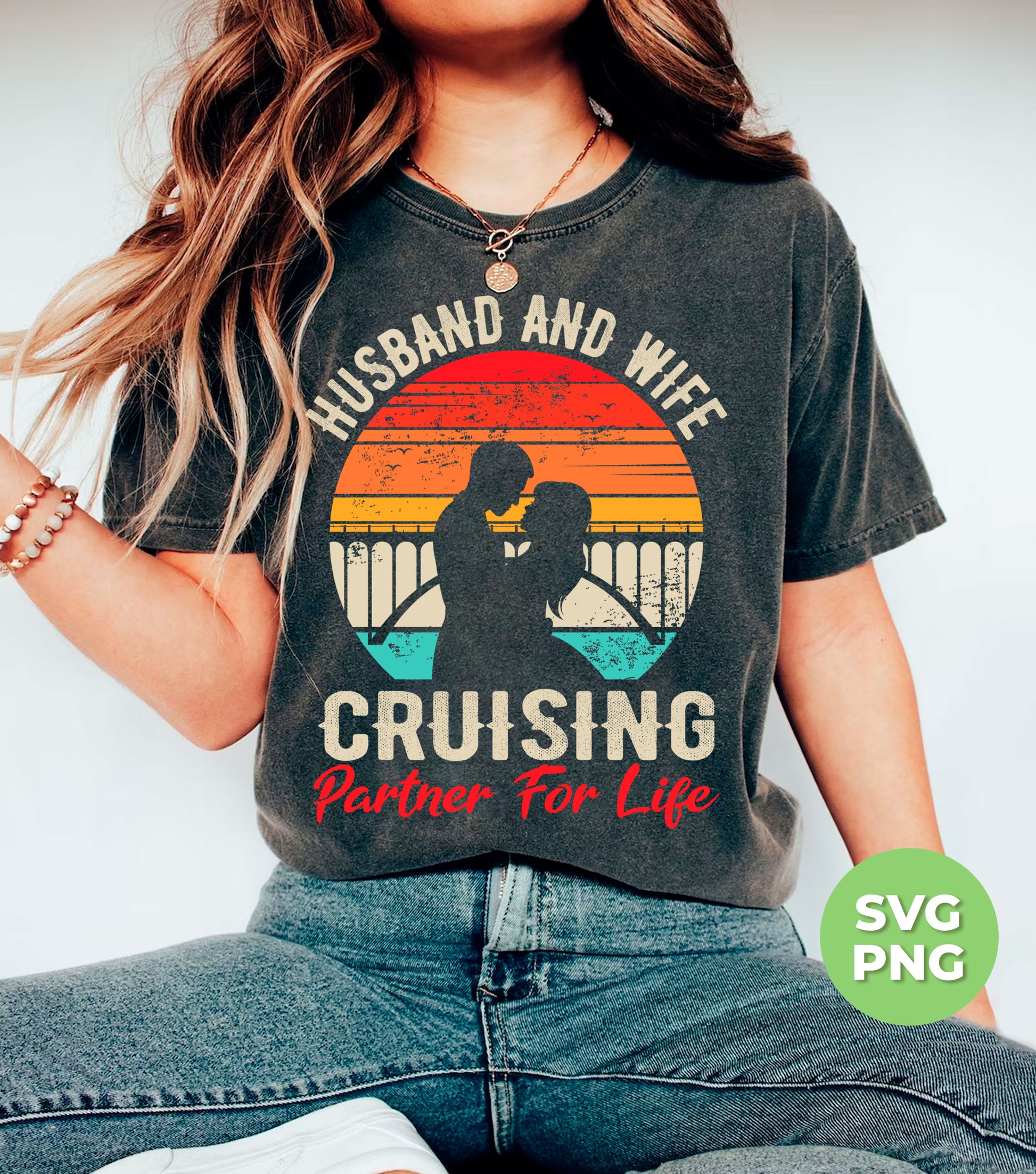 Husband And Wife Cruising Partner For Life, Retro Valentine, Couple Silhouette, Digital Files, Png Sublimation