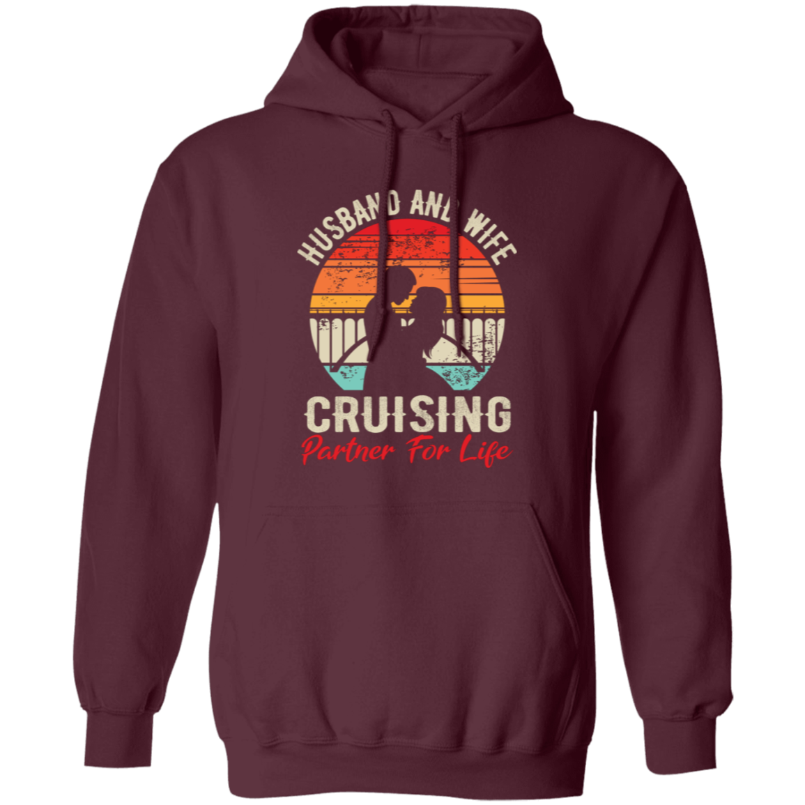 Husband And Wife Cruising Partner For Life, Retro Valentine, Couple Silhouette Pullover Hoodie
