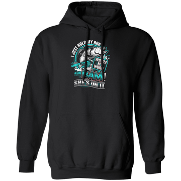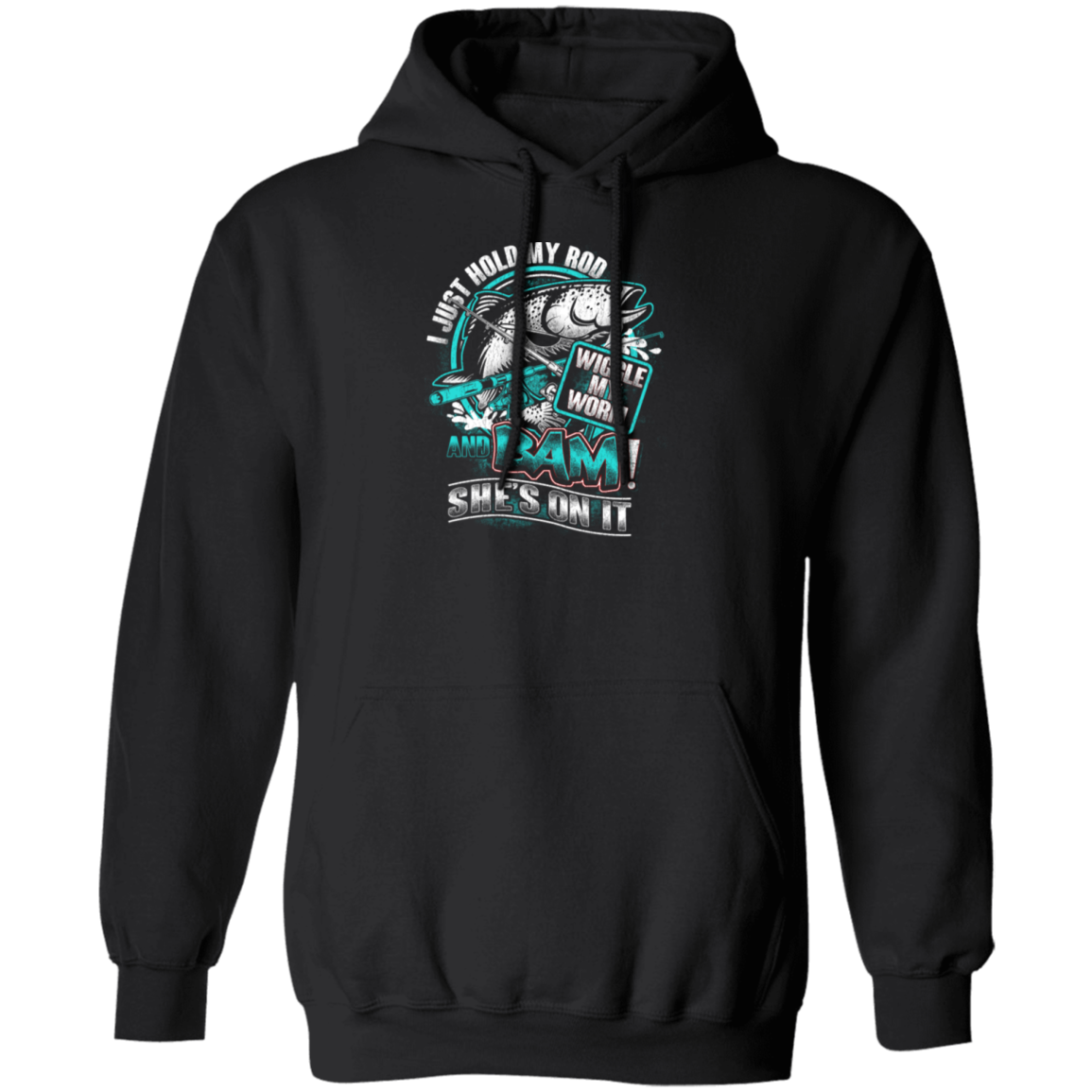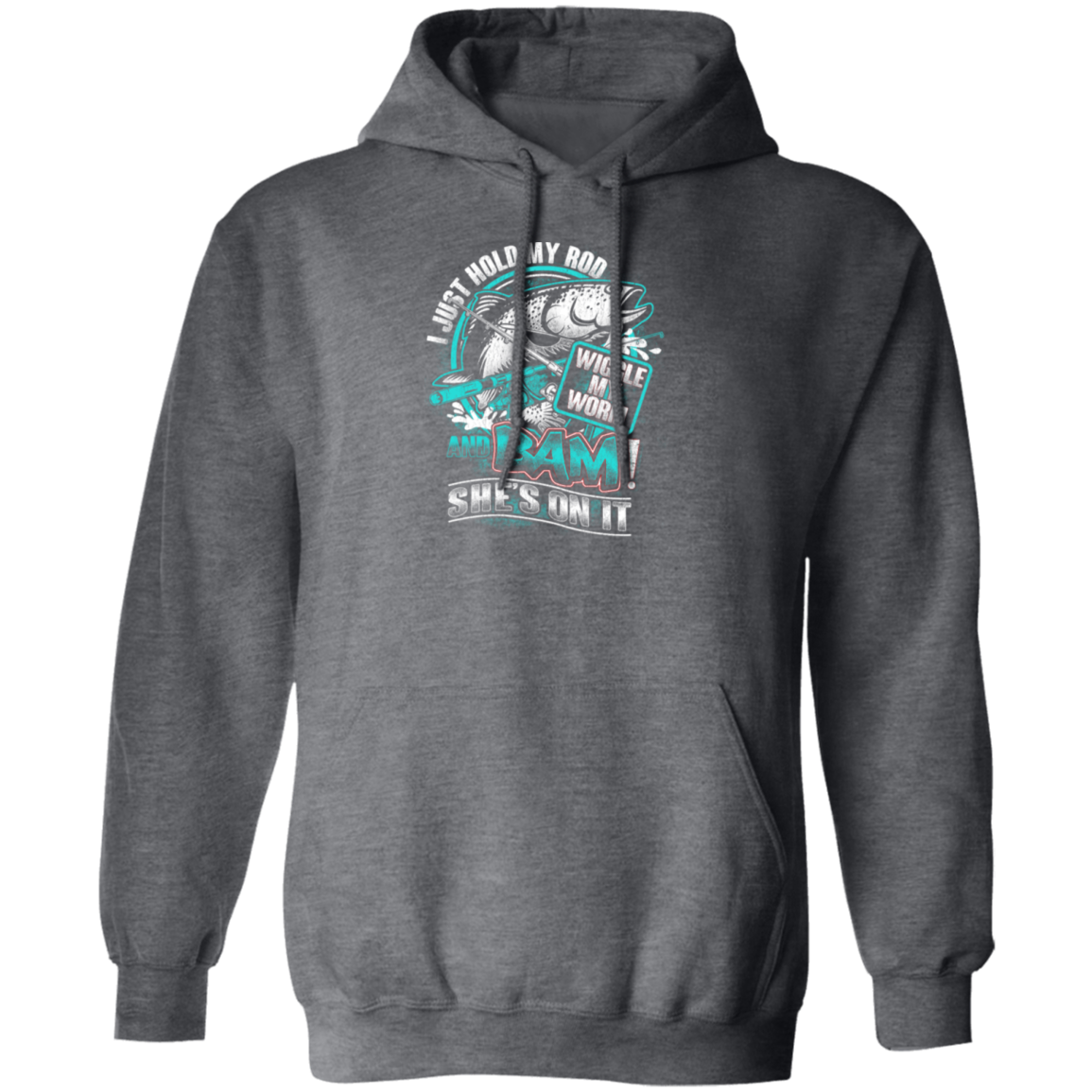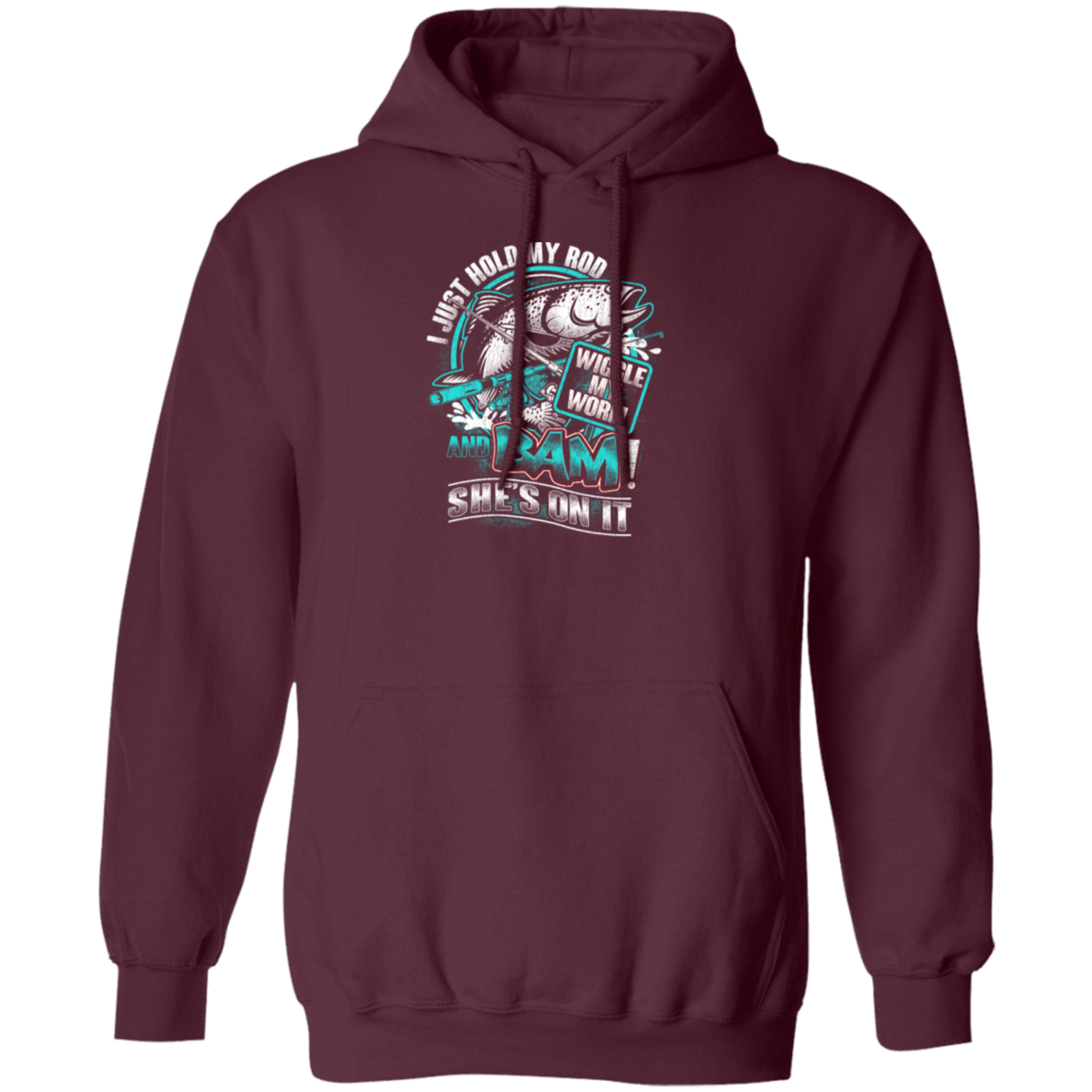 I Just Hold My Rod, And Bam! She's On It, Wiggle My Worm, Love Fishing Pullover Hoodie