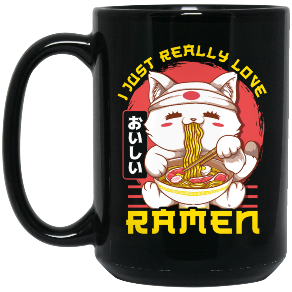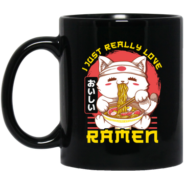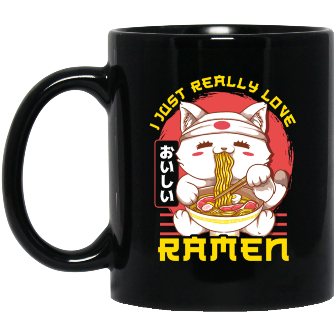 I Just Really Love Ramen Anime Cat, Ramen Cute Funny Black Mug