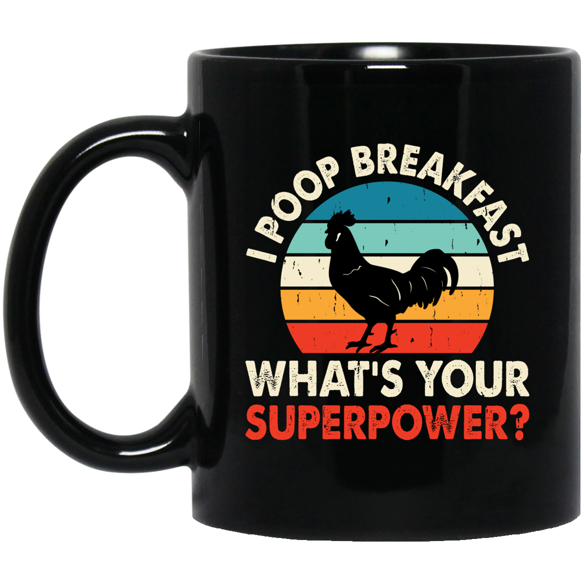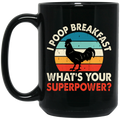 I Poop Breakfast, What's Your Superpower, Retro Chicken Black Mug