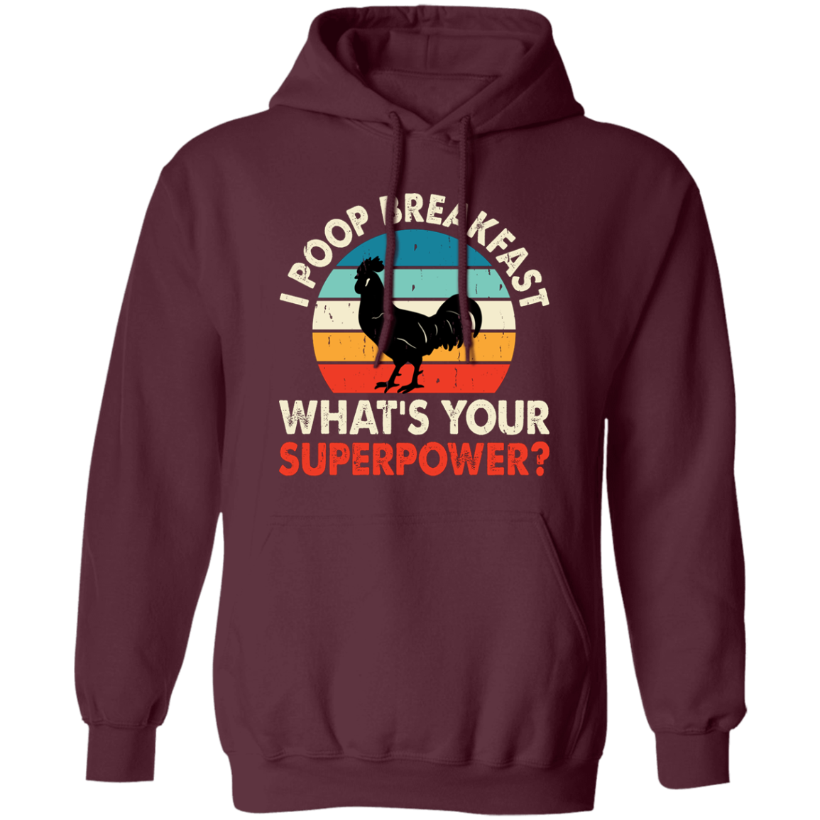 I Poop Breakfast, What's Your Superpower, Retro Chicken Pullover Hoodie