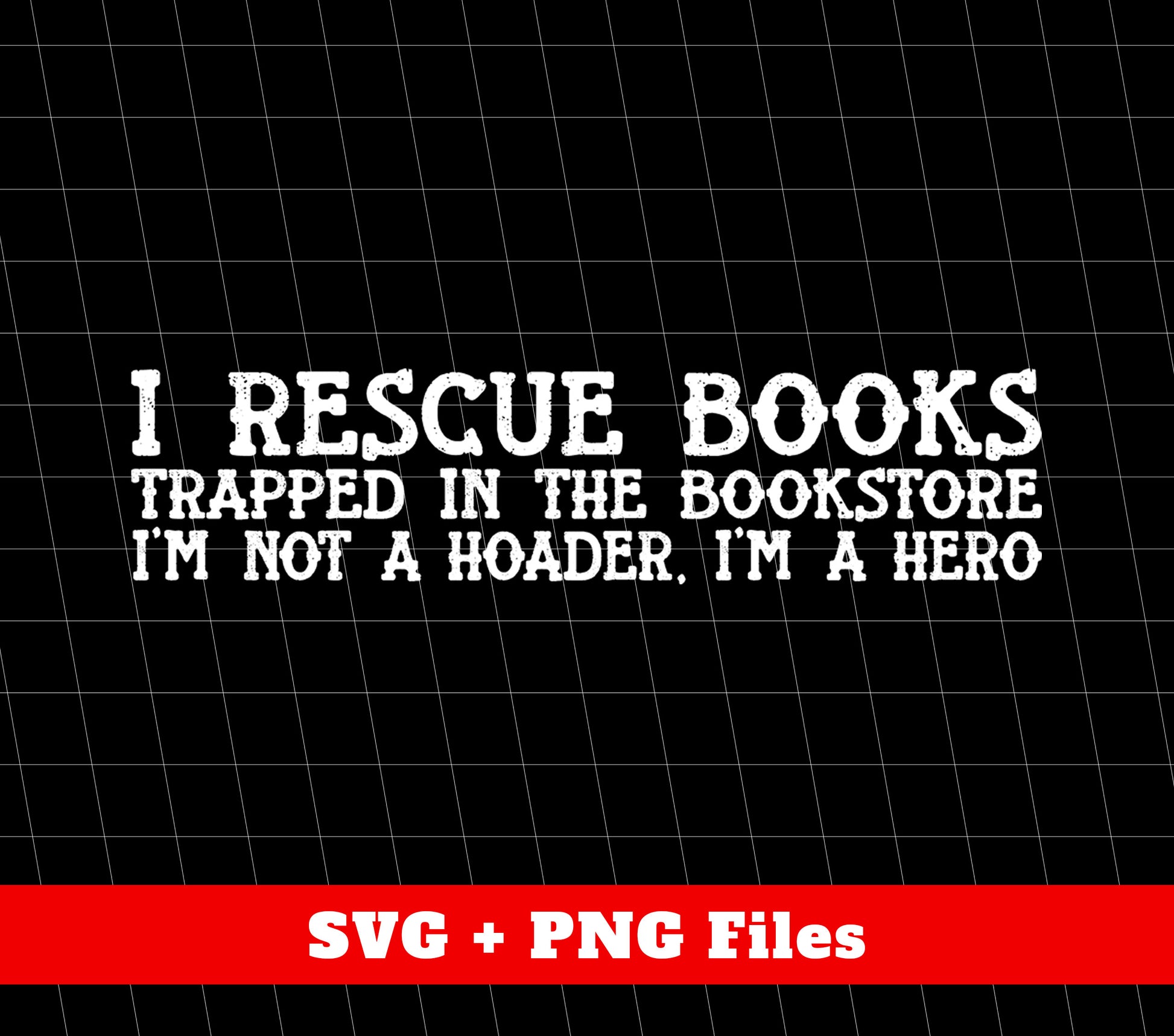 I Rescue Books Trapped In The Bookstore I'm Not A Hoader, I'm A Hero, Digital Files, Png Sublimation