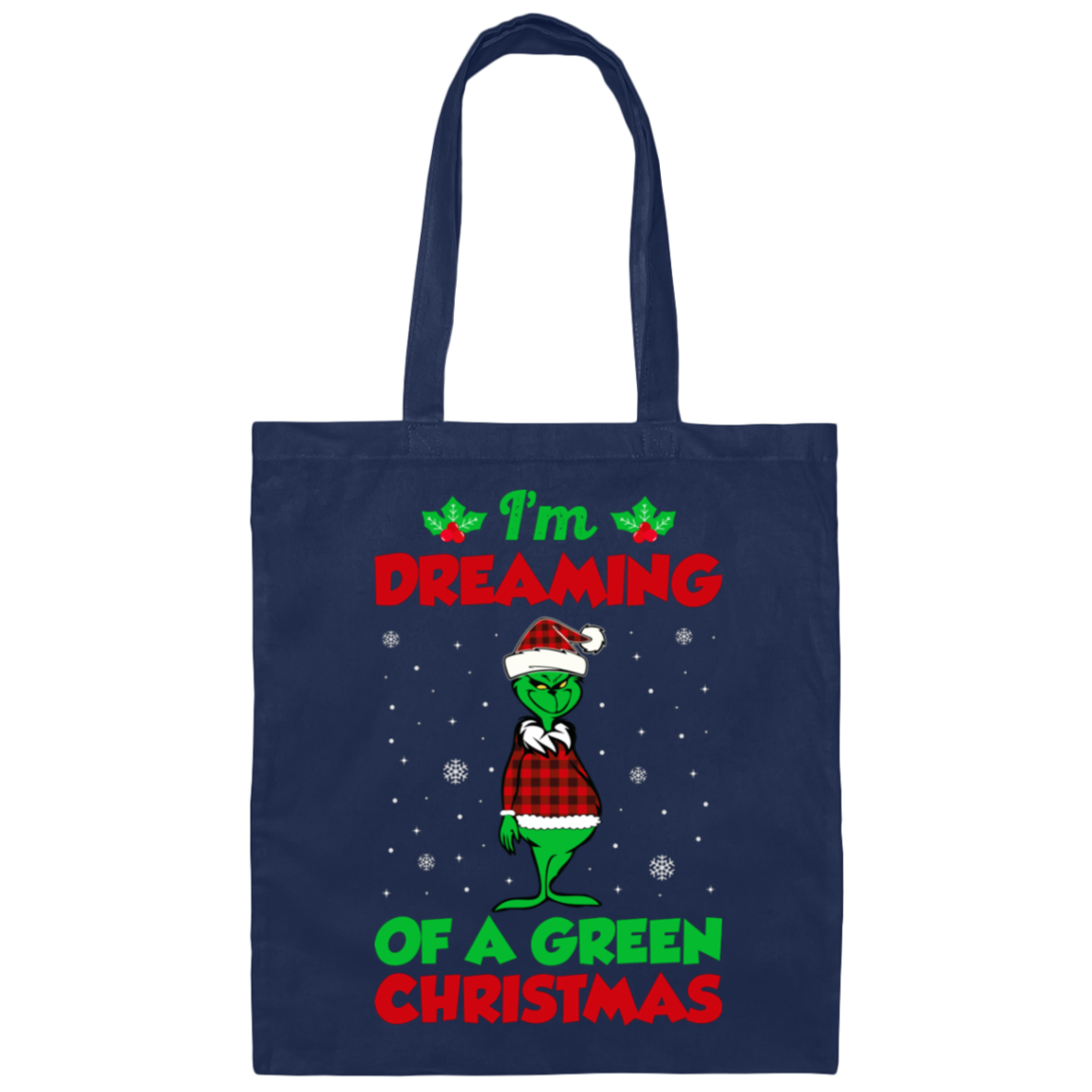 I'm Dreaming Of A Green Christmas, Funny Christmas, Merry Christmas, Trendy Chrismas Canvas Tote Bag