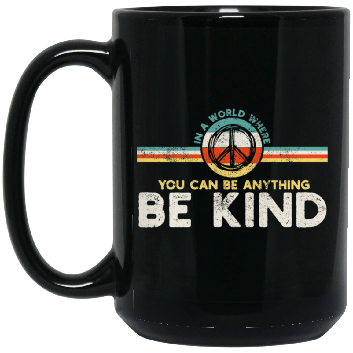 In A World Where You Can Be Anything, Kindness Peace Hippie Retro Black Mug